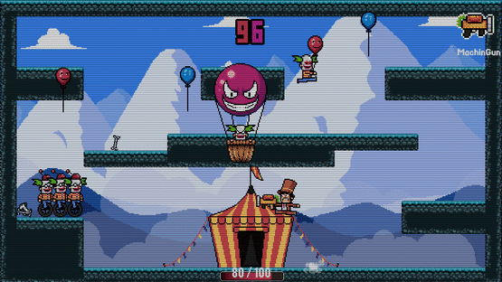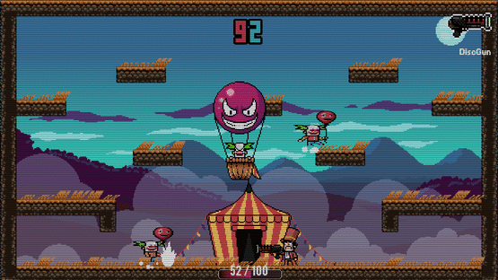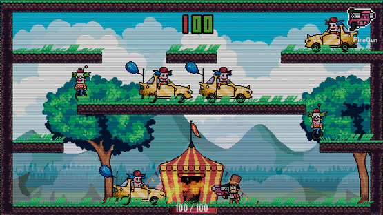Clowns-2d shooter with platformer elements, where the player protects the circus tent from the incoming wave of mad clowns, picking up unique weapons and bonuses that will help in passing the levels and the final meeting with a huge clown.