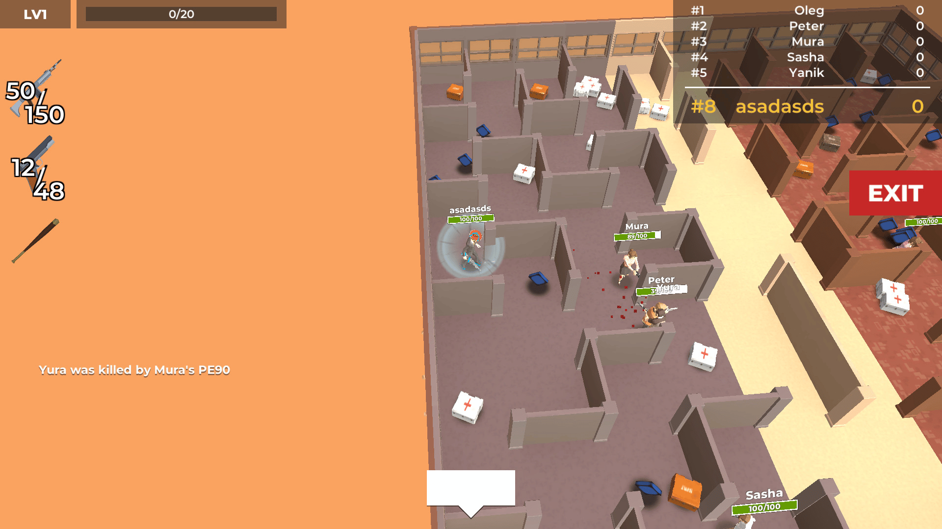 Office Strike is a multiplayer Battle Royale game where you can play with up to 24 players against each other in a battle for survival!