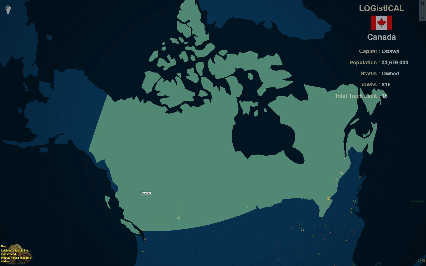 Logistical grows in North America with the addition of Canada. Over 800 New towns to Complete. Canada is huge. 2nd biggest country on this planet. Bigger than Australia but many parts not as accessible. That being said, it will take a lot of travel to play this country.