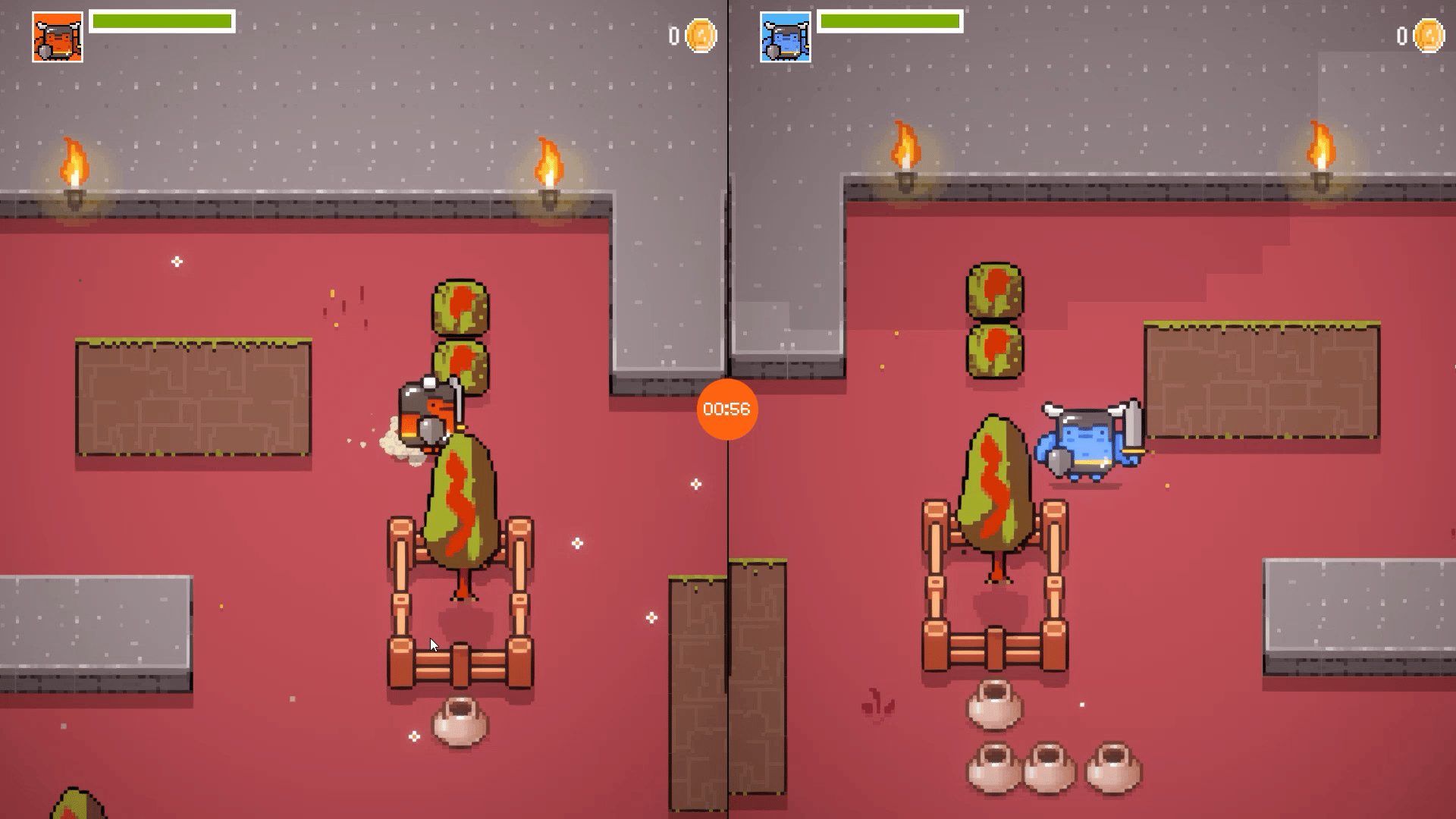 The Cruel kings is a top-down game in which you must either kill or survive. Each round starts with a split screen. The goal of the players is to destroy each other in 1 minute. There are also coins. If the players have an equal amount of life, then the one who collected the most coins wins.