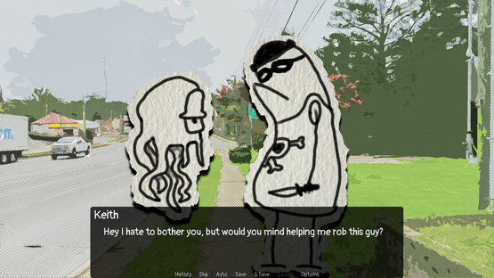 An absurdist comedy choose-your-own-adventure game featuring a massive cast of bizarre characters, notebook-doodle visuals, and 7 crazy endings! As you embark on your quest to go to the store, the denizens of this zany town will seek your help with their insane problems.