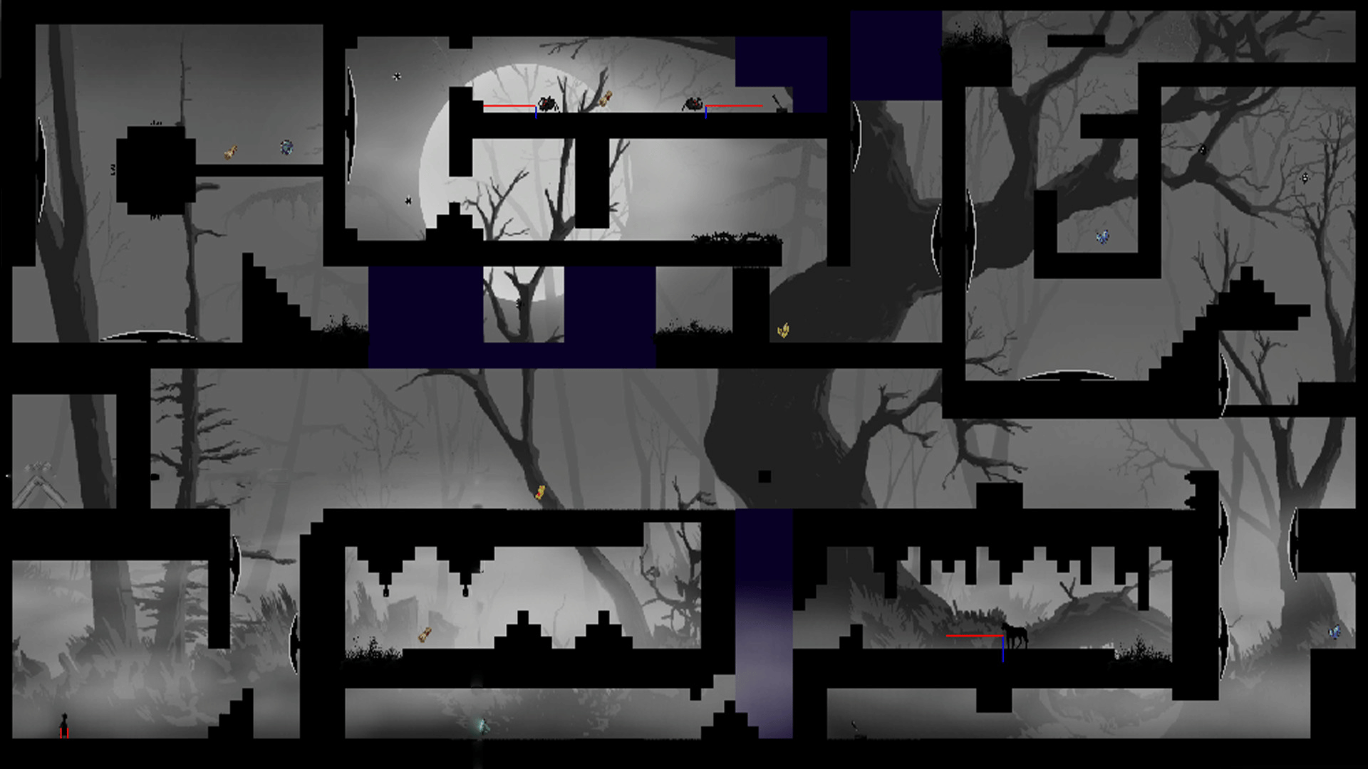 A platform game where you collect items to clear the stage, avoid or defeat enemies, pass through traps, and clear the stage with a system (operation) that uses the natural principle that creates a shadow when light does not pass through an object.