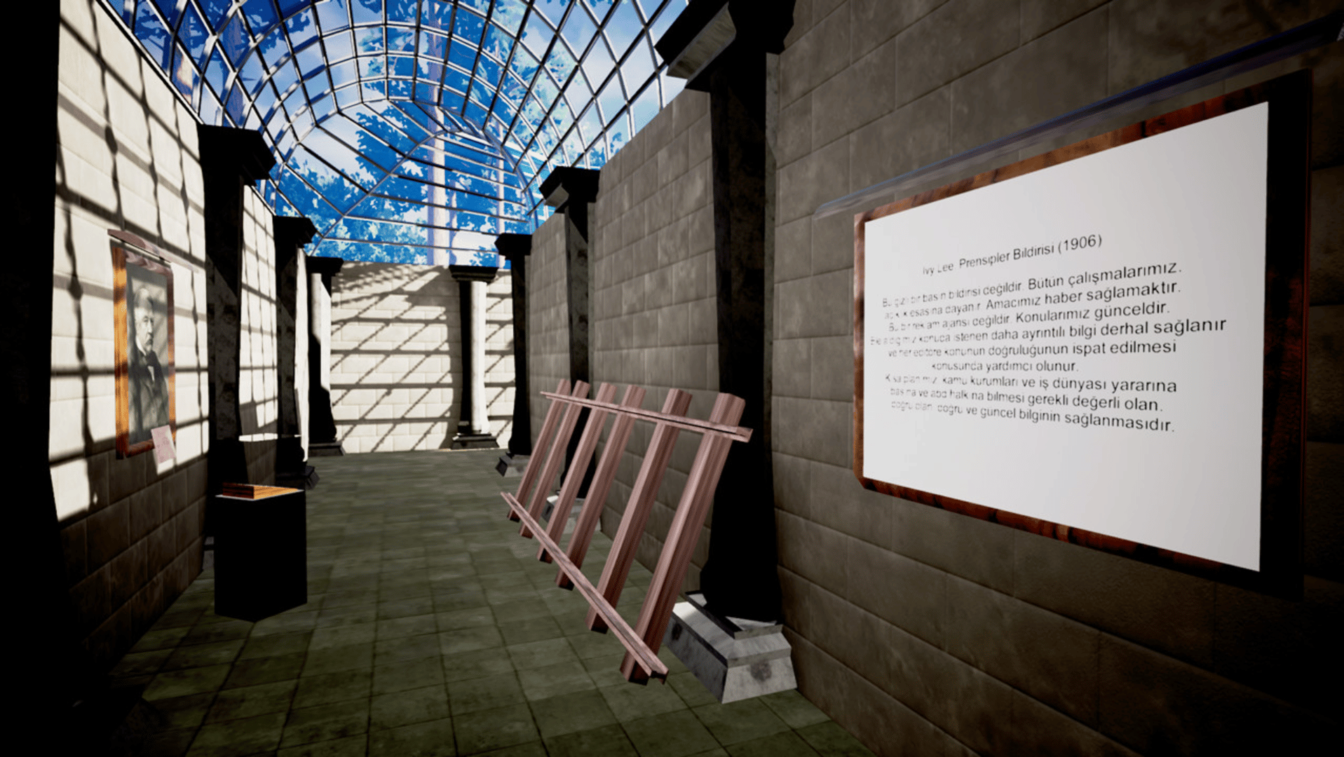 Four model contents in public relations, which is one of the topics in public relations education, have been developed to support the educational process using virtual reality technology.