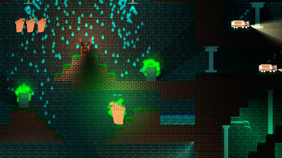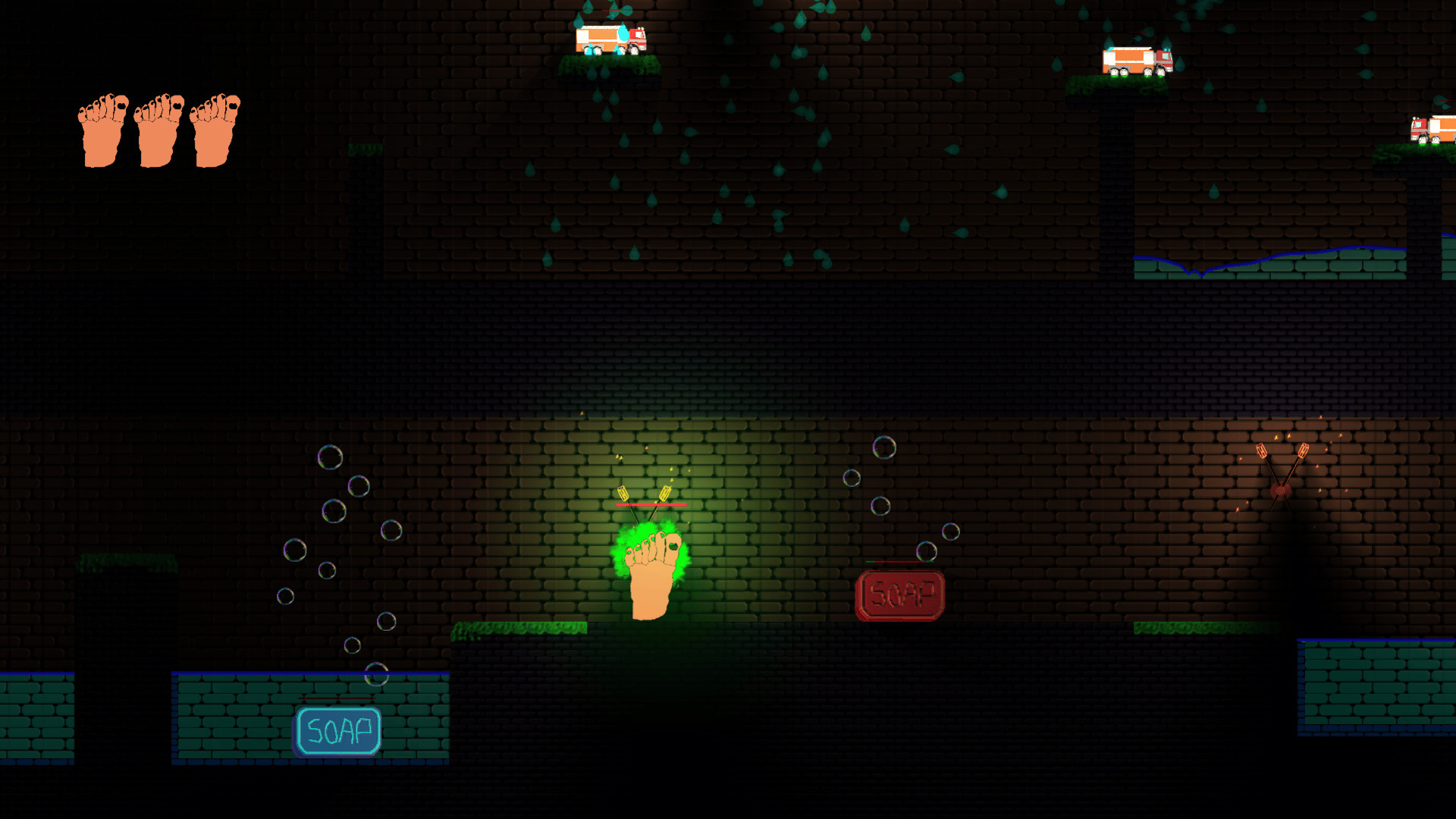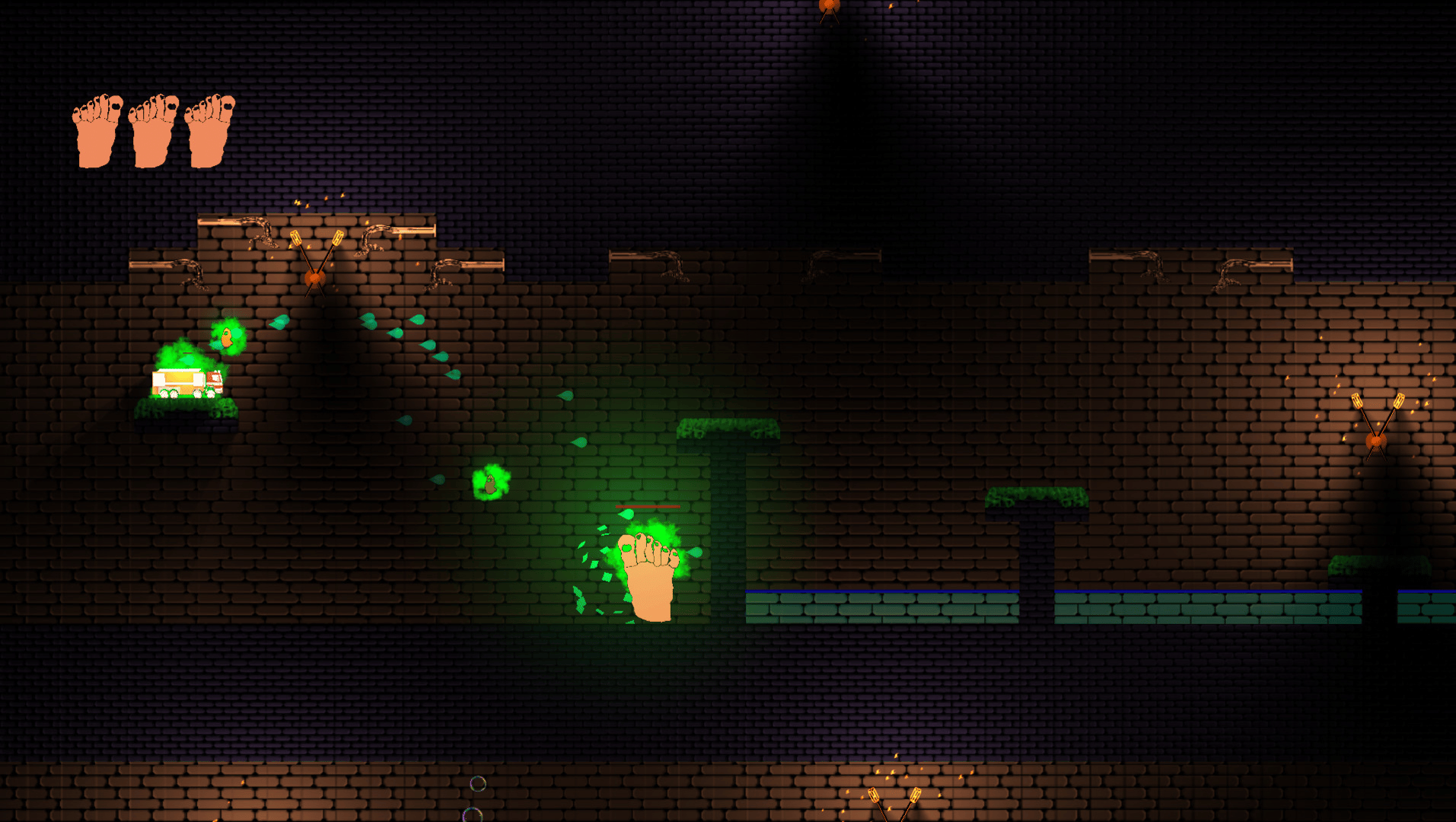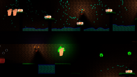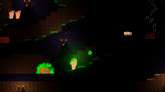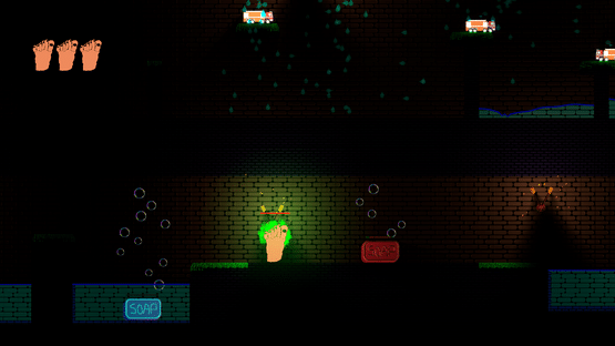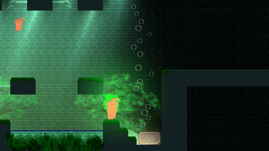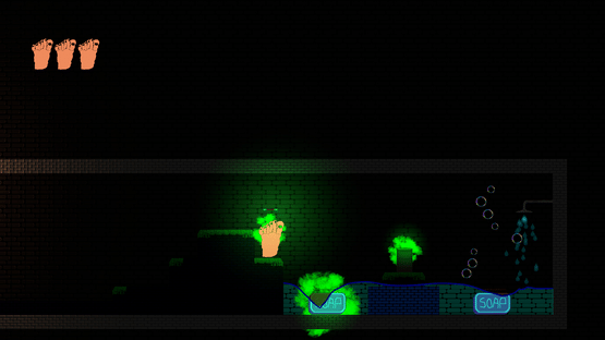 You wake up in a strange place reduced to a six-toed foot load of enemies are trying to wash you! FIght them by wall jumping and shooting your extra toe at them, while you try to find your way out.