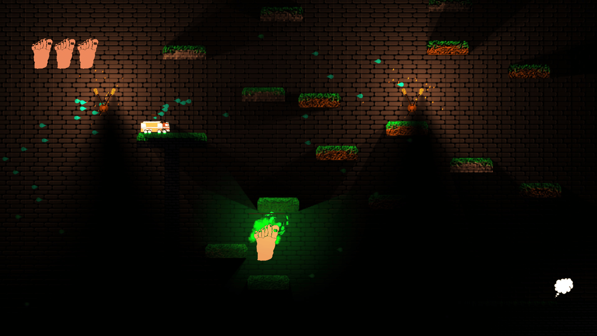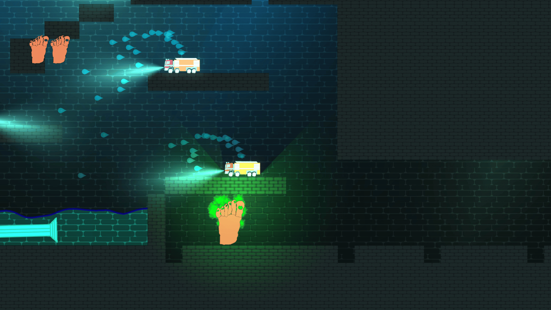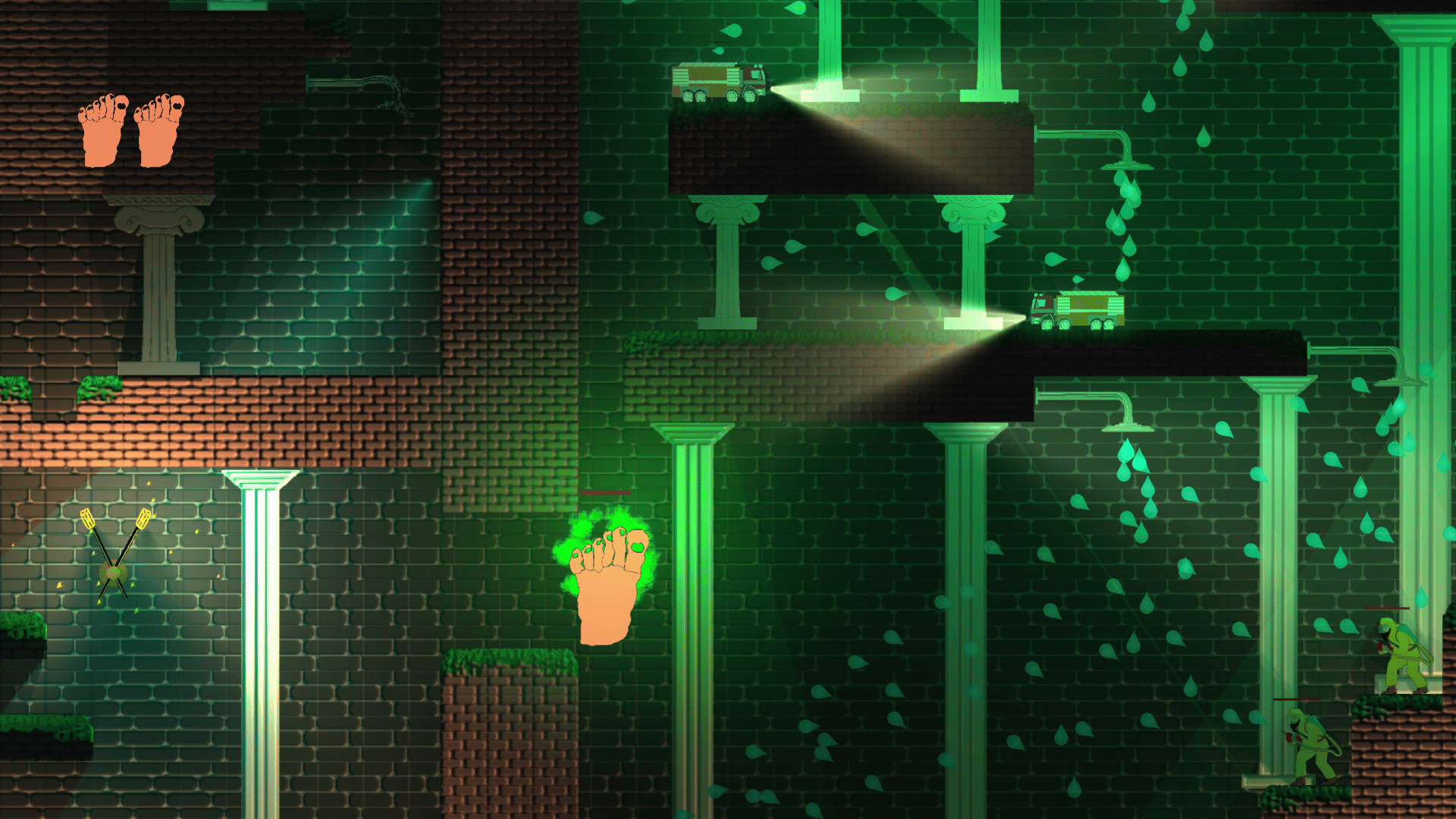 You wake up in a strange place reduced to a six-toed foot load of enemies are trying to wash you! FIght them by wall jumping and shooting your extra toe at them, while you try to find your way out.