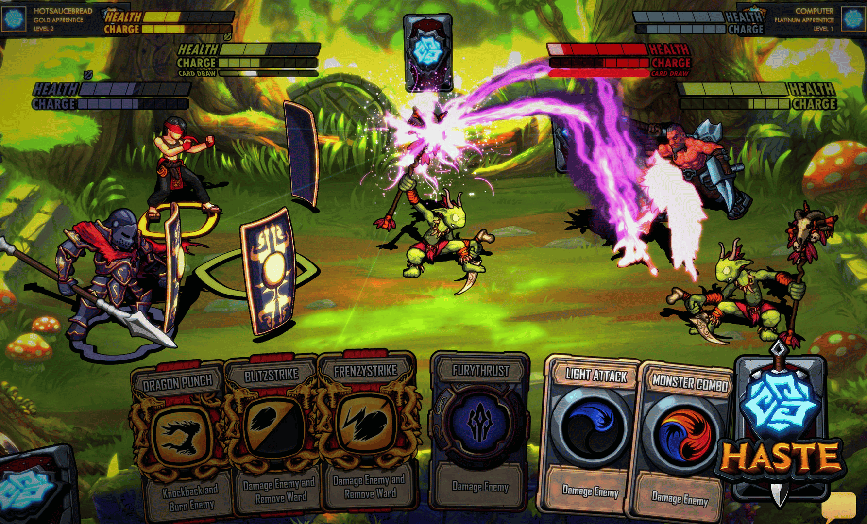 Not your average card game... Haste is not a Roguelite, no Card Packs and no... turns?! Haste is a Strategic Card Game played in Real Time. Simply choose 3 heroes and launch into battle. With an ever-changing board, you have to think quick to make meaningful decisions!