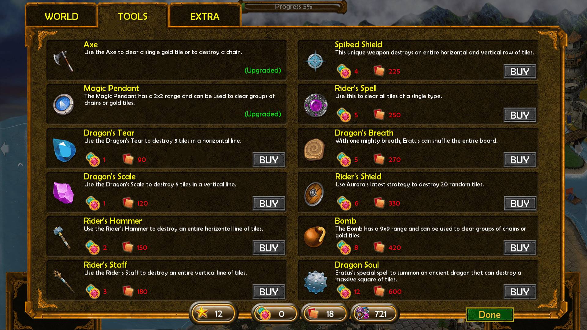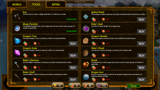 In this heroic match-3 game you have to help Aurora and her dragon Eratus in their fight to overthrow the evil Queen and restore peace to the land.