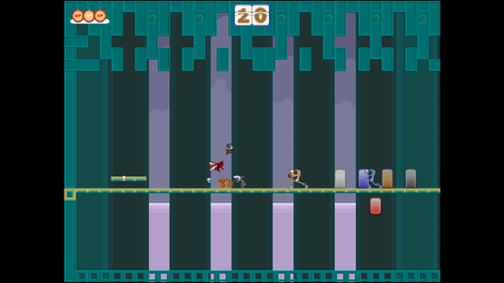 Platform game. You aim to clear over 60 stages use Jump , Dive and Tackle!