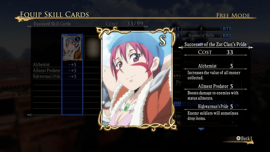 Adds 15 set of Limited Skill Cards. A set contains 3 cards. The Skill Cards can be acquired in Free Mode by selecting "Add" under "Skill Cards".
