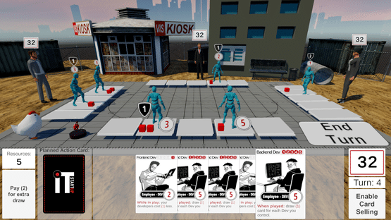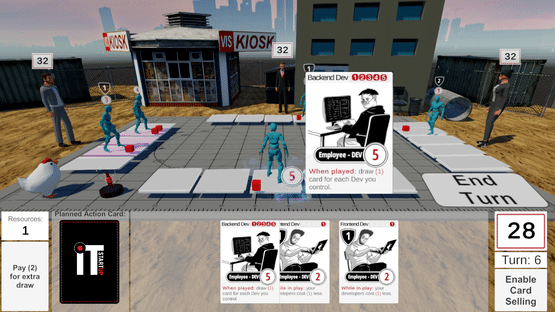 A dev themed Roguelike Deckbuilder. Play Developer Cards to gain project points. Raise your DEV’s efficiency with Knowledge Cards. Sabotage your opponents or steal their Developers. Craft a unique deck and squeeze out your employees to win the next Project Battle!