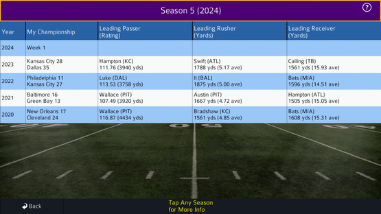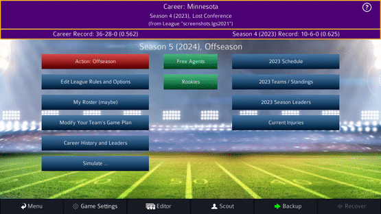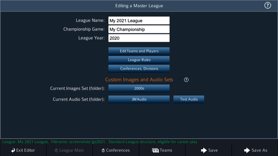 Manage, Coach, or enjoy watching live sims! Create custom schedules! Configure playoffs formats, create manual brackets, or standalone tournaments! Enjoy custom sounds, music, and more! Season play with up to 130 teams! Career play with custom leagues!