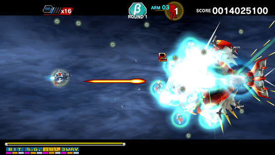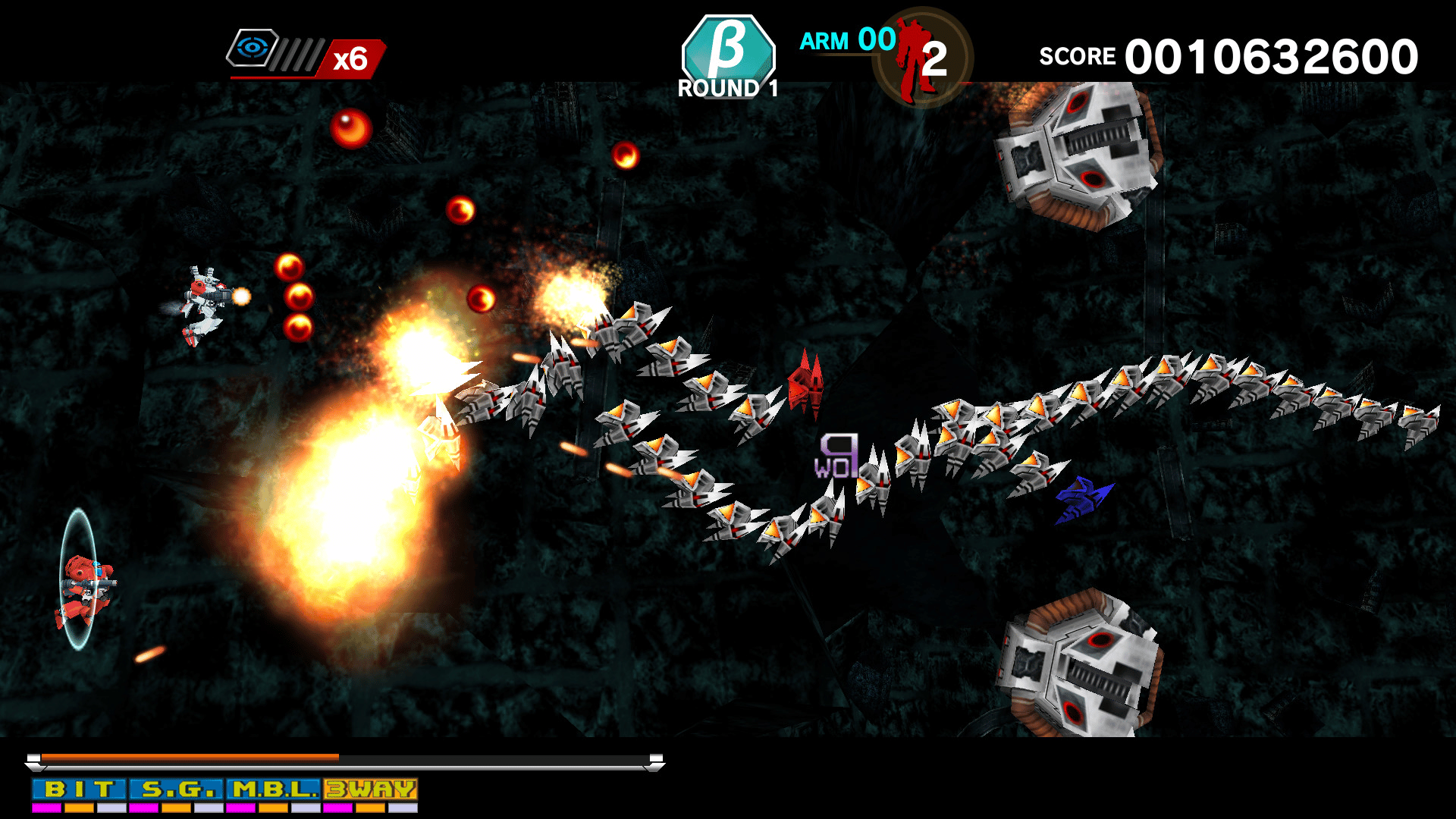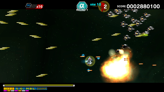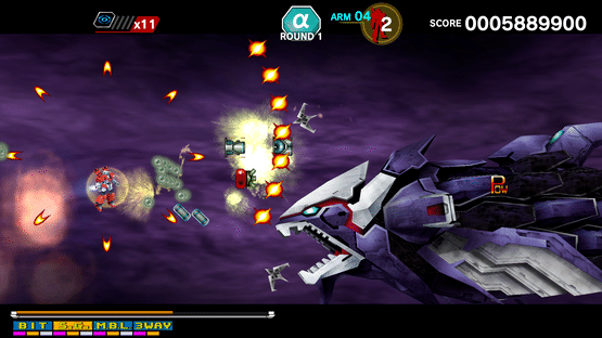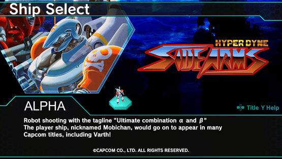 Robot shooting with the tagline "Ultimate combination of α and β". The player ship, Alpha (nicknamed Mobichan), would go on to appear in many Capcom titles, including Varth!