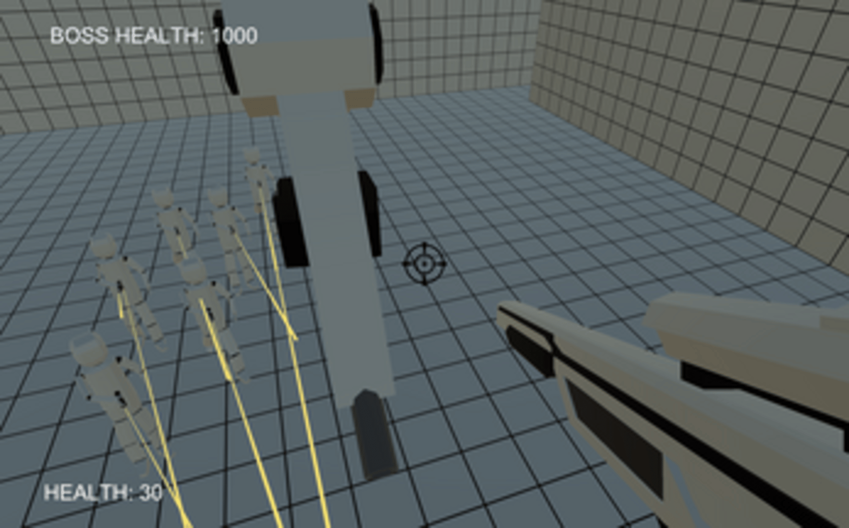 In Malfunction FPS, your job is to defeat the robots and escape the robots to get to a door at the end of each level.