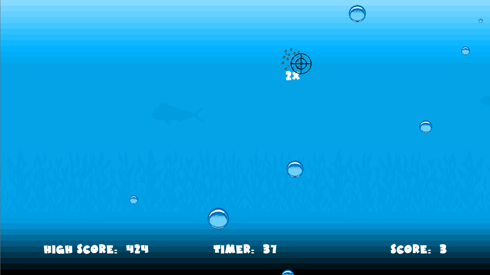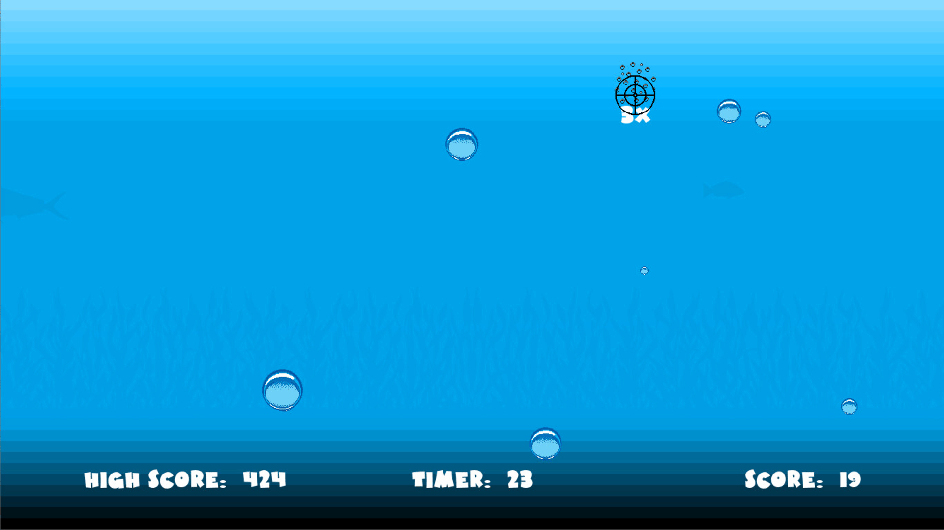Bubbles come in different sizes (depths) and they rise at different speeds. Players have 60 seconds to pop as many as they can. When bubbles are popped points are scored. The smaller, faster bubbles score more points than the bigger, slower bubbles. Beware of the 'stink' bubbles.