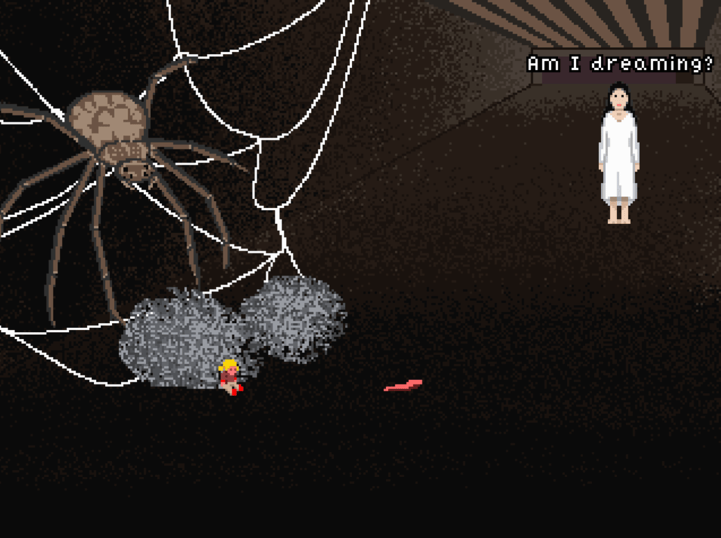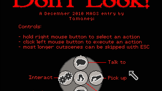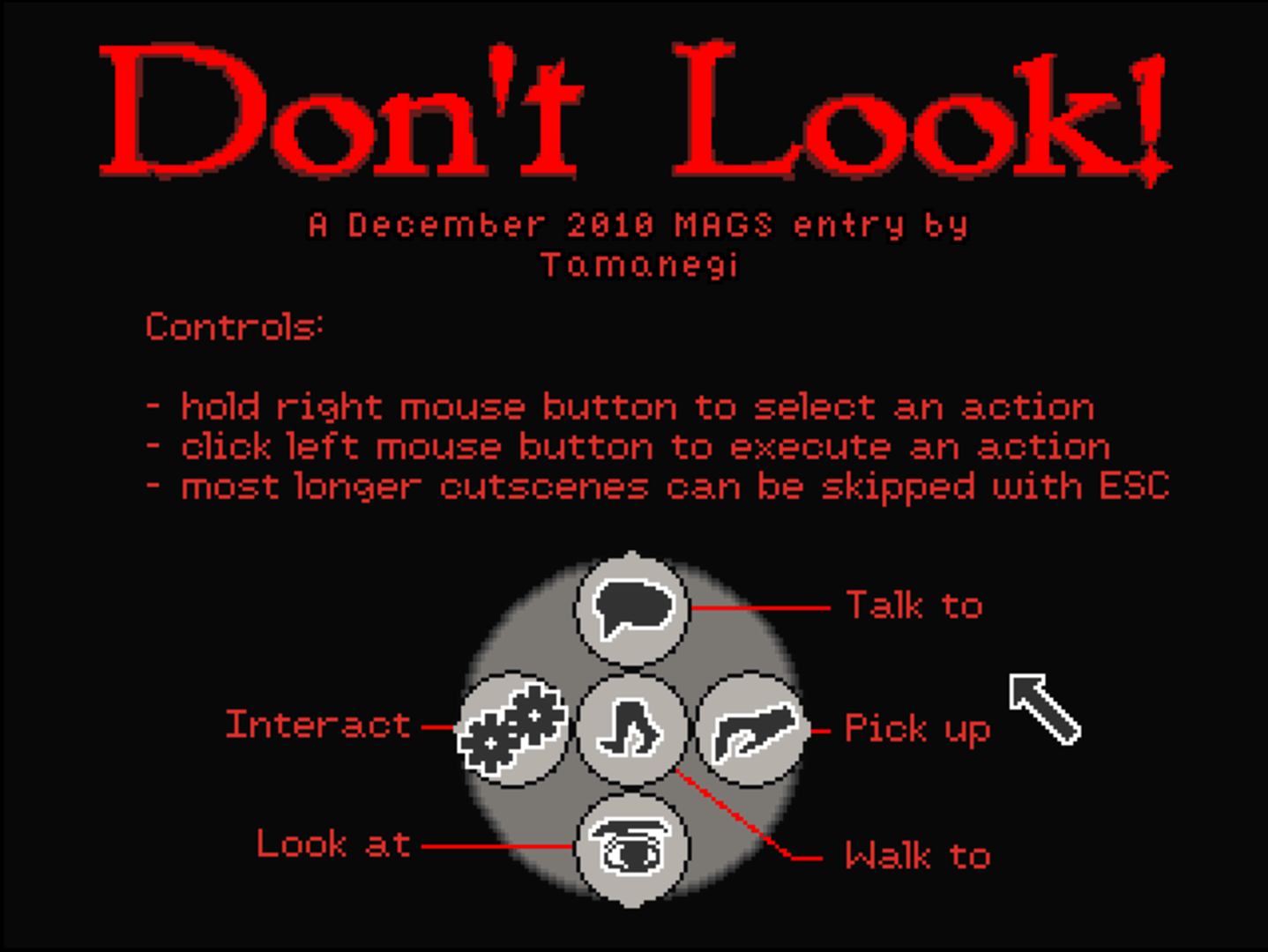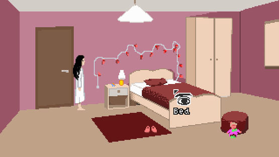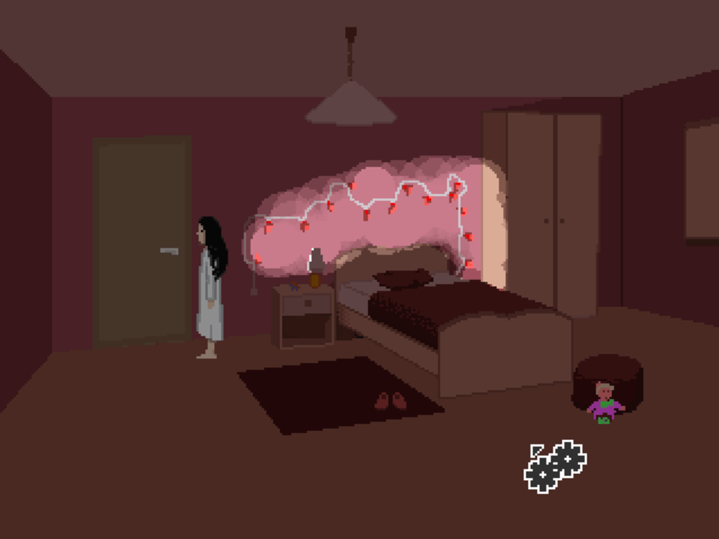 My MAGS entry for December 2010: "Discovery" Little Sharon is afraid of the dark, what will await her when she goes to sleep? The game is done in 32-bit color, but I did stick to an 8-bit palette. Certain effects only work with 32-bit, so using that was necessary.