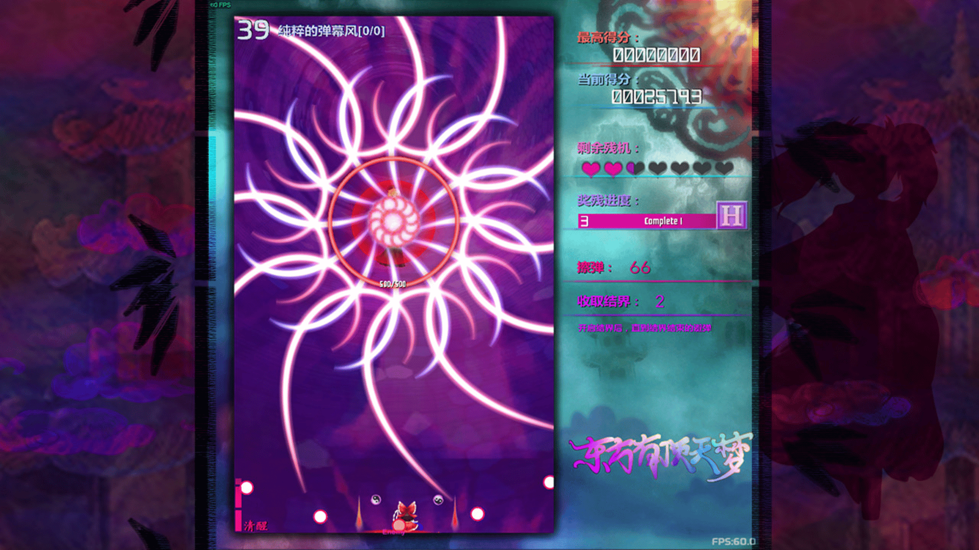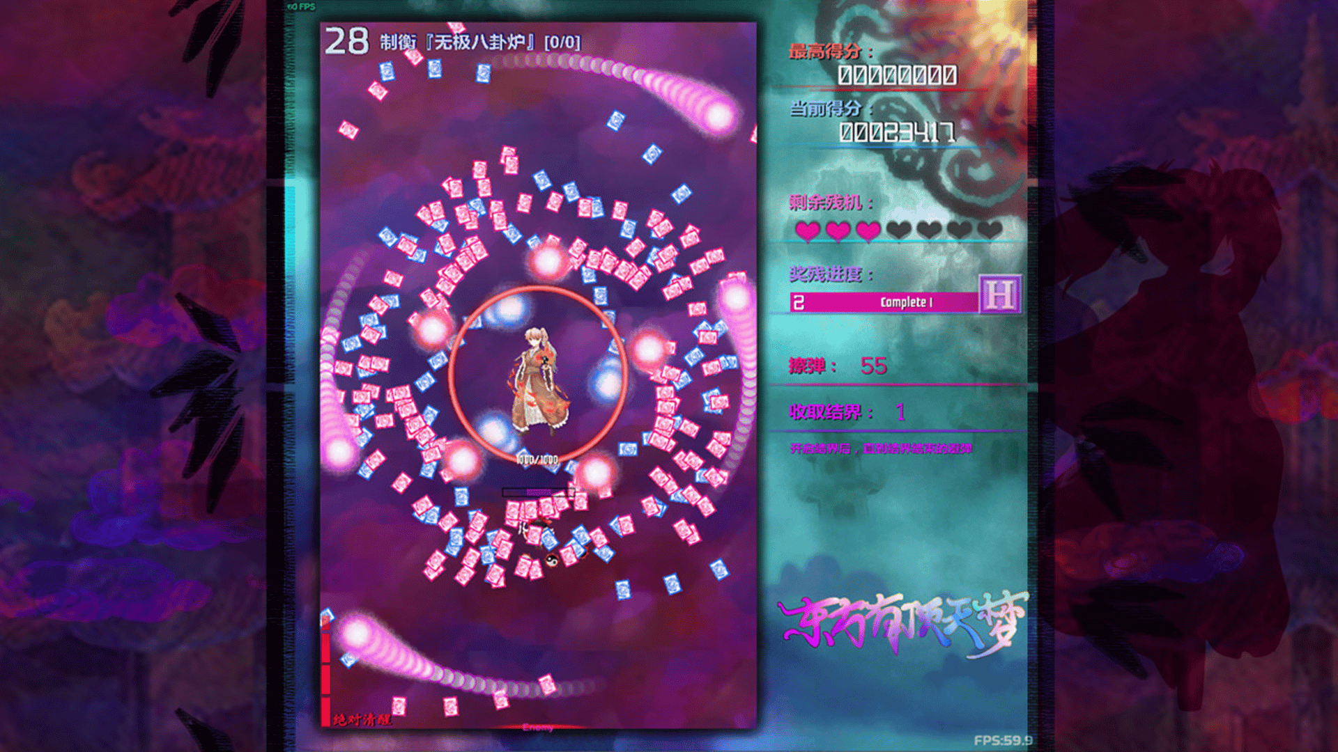 An TouHou style barrage shooting game, with a unique firepower and boundary mechanism, use of the mechanism and resources, in the difficult Stage and BossBattle to master the rhythm and explore the SpellCard ,to defeat the FinalBoss, uncover the veil of transformation, and see the "dream of the sky"