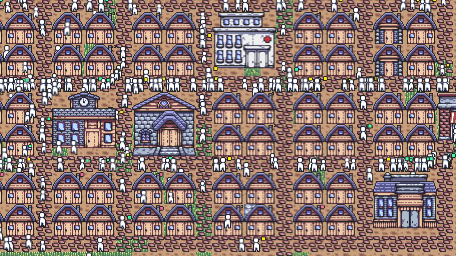 Crowded Blue Dot is a game about producing various items to make people happy and growing a city from a small village to a metropolis.