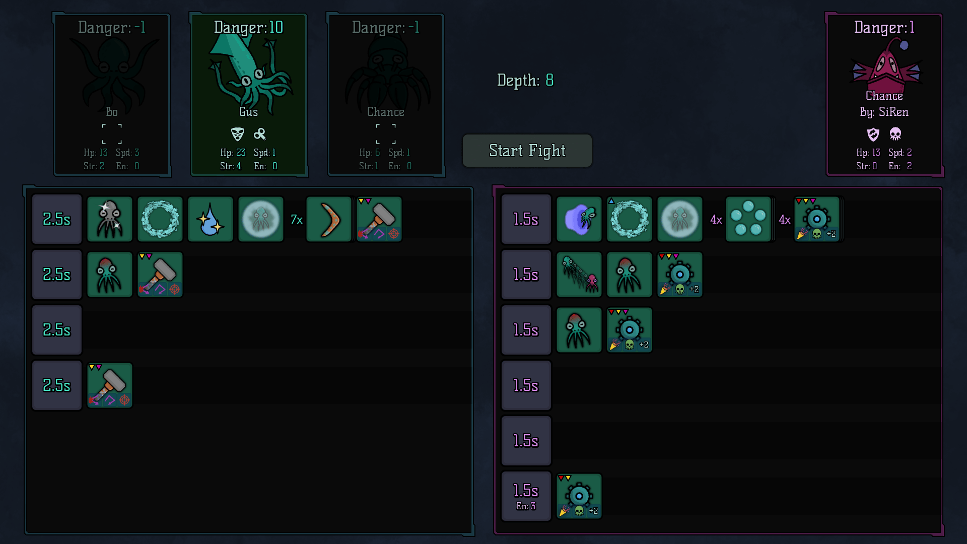In this roguelike auto battler, every enemy you face was created by another player! Modify and improve your creatures' behaviour after each battle and see how far down you can make it. Do you have what it takes to be the first to reach depths, where no one has gone before?