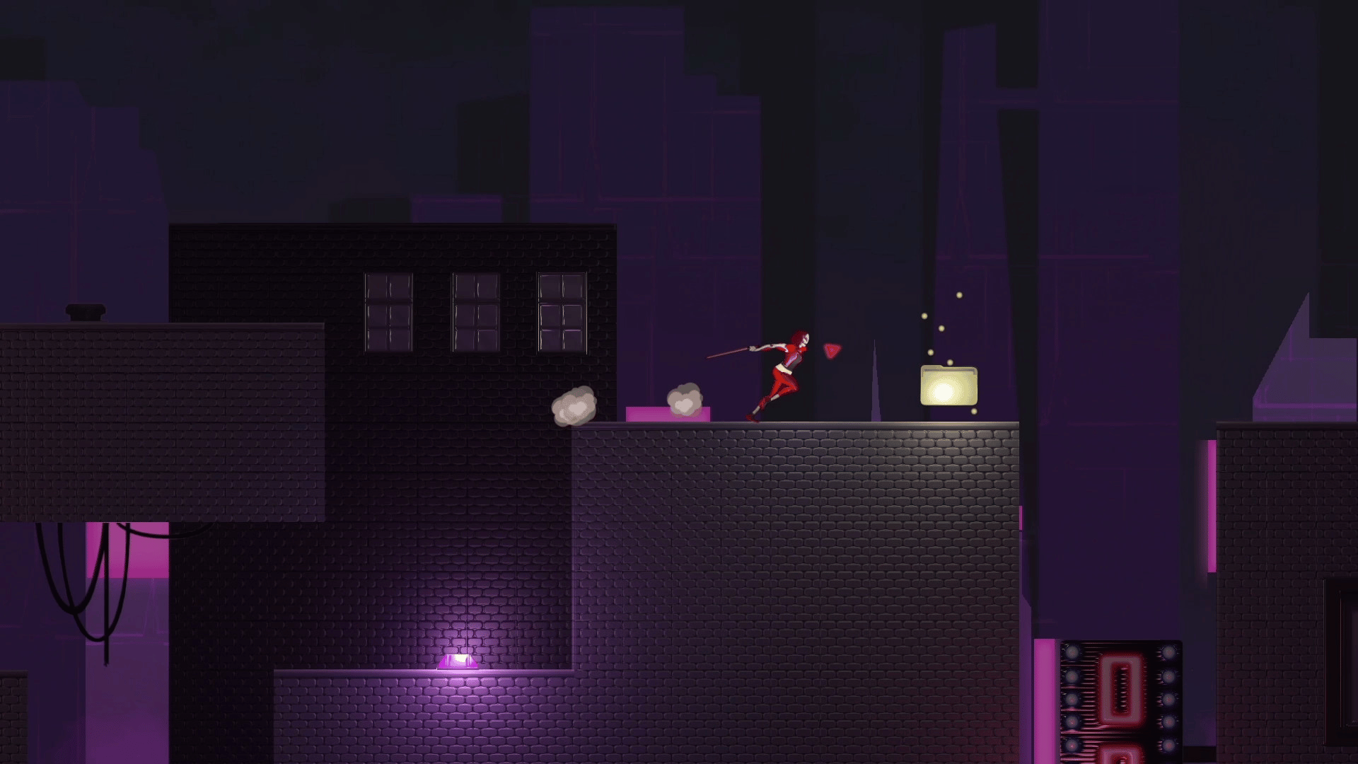 Play as Scarlett, a freelance cyborg ninja, in a neon city filled with corporate drones. Use her top of the line sword and bio enhancements to dash throughout the city and chain your dashes through drones. Make sure to watch your health, too many mistakes and you might Flatline.