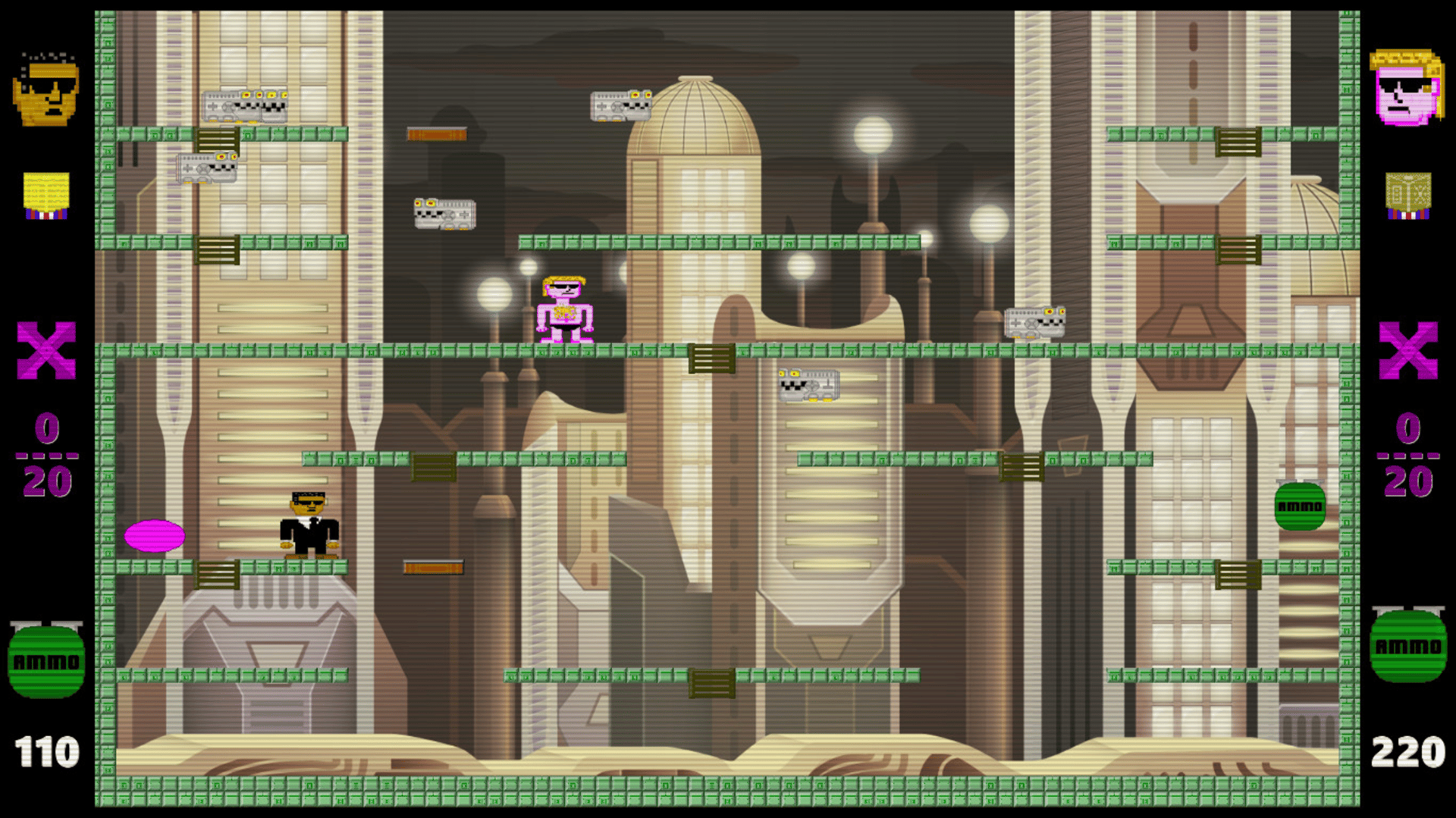 Help the government agents in black thong to end the alien threat and the invasion of the machines. 1 or 2 players. Individual and cooperative. Gamepad compatible. Demo available.