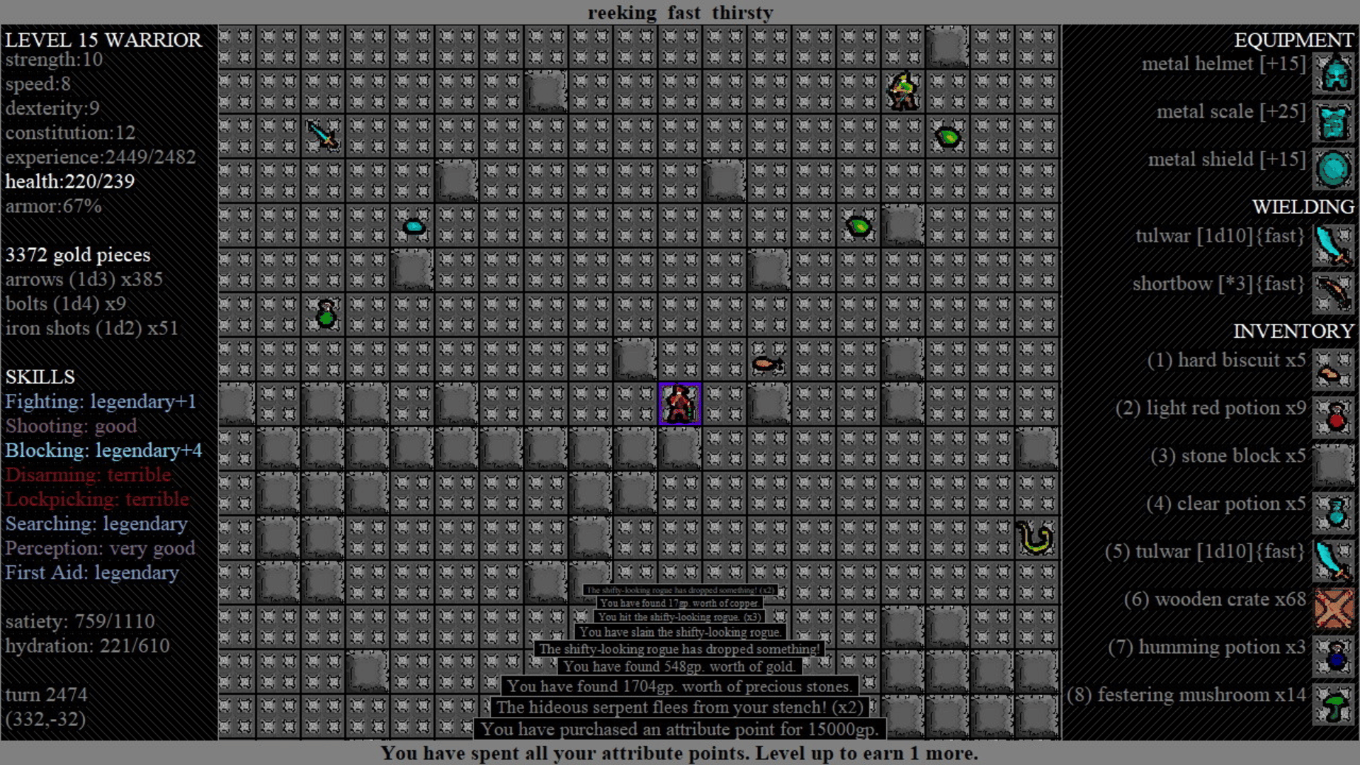 BASIC ROGUE is a turn-based dungeon crawler. You have very limited inventory space, skills, weapons, armor, and stats which all need to be managed while fighting enemies, gathering treasure, and figuring out what your primary objective is. This game will appeal to players looking for a challenge.