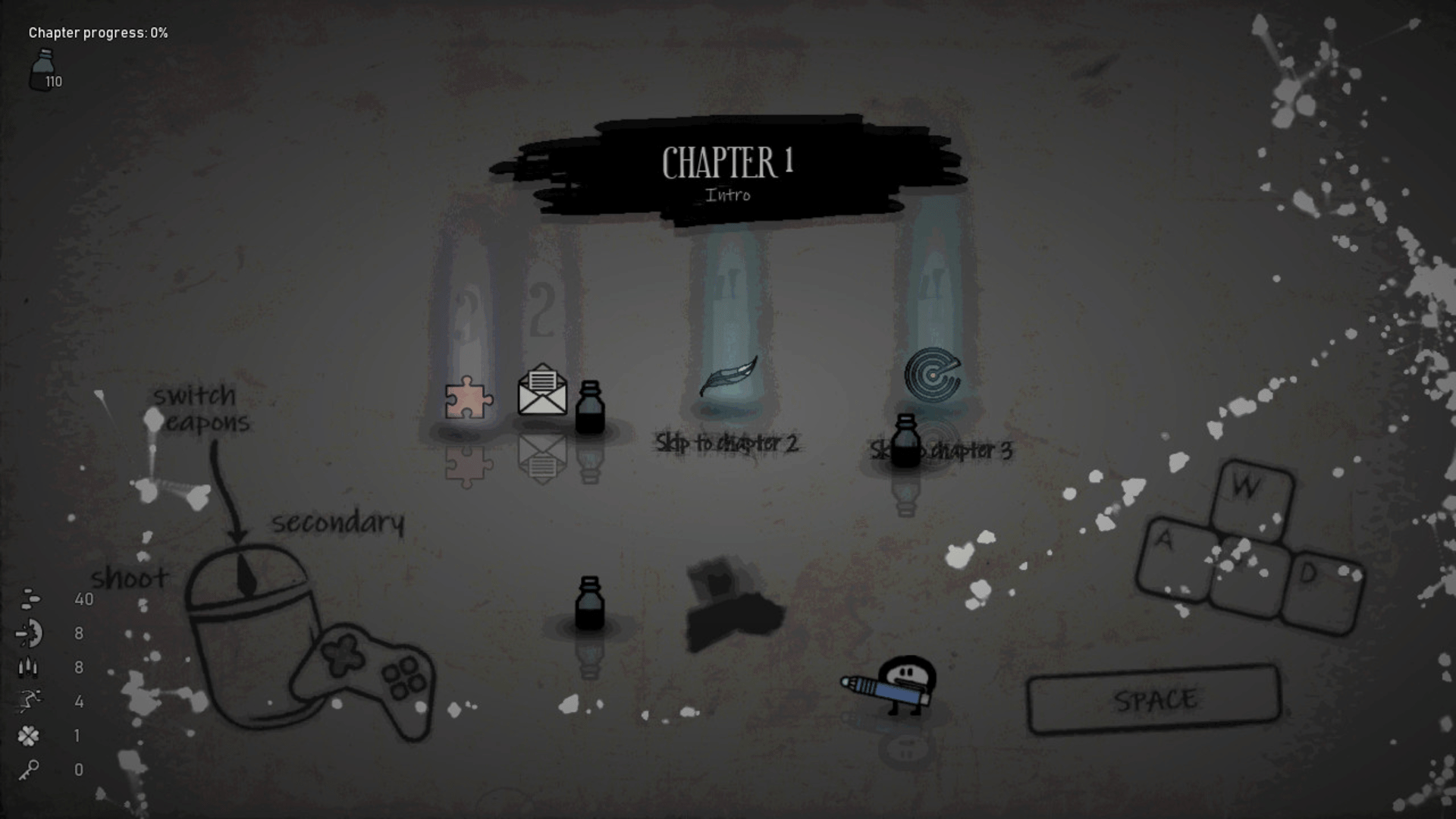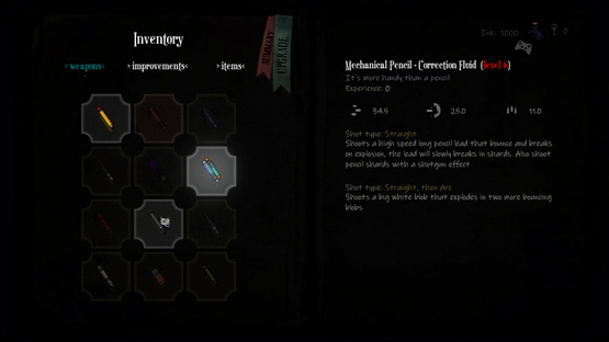 Ink. is a semi-procedural/random RPG action shooter. You'll play in a blank book, trying to write your story as a small ink creature but with great powers. Start your adventure, fight bosses, find items and discover new incredible synergies and combos.