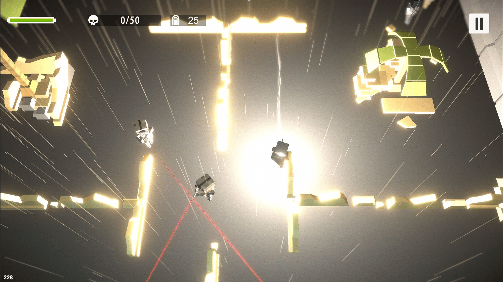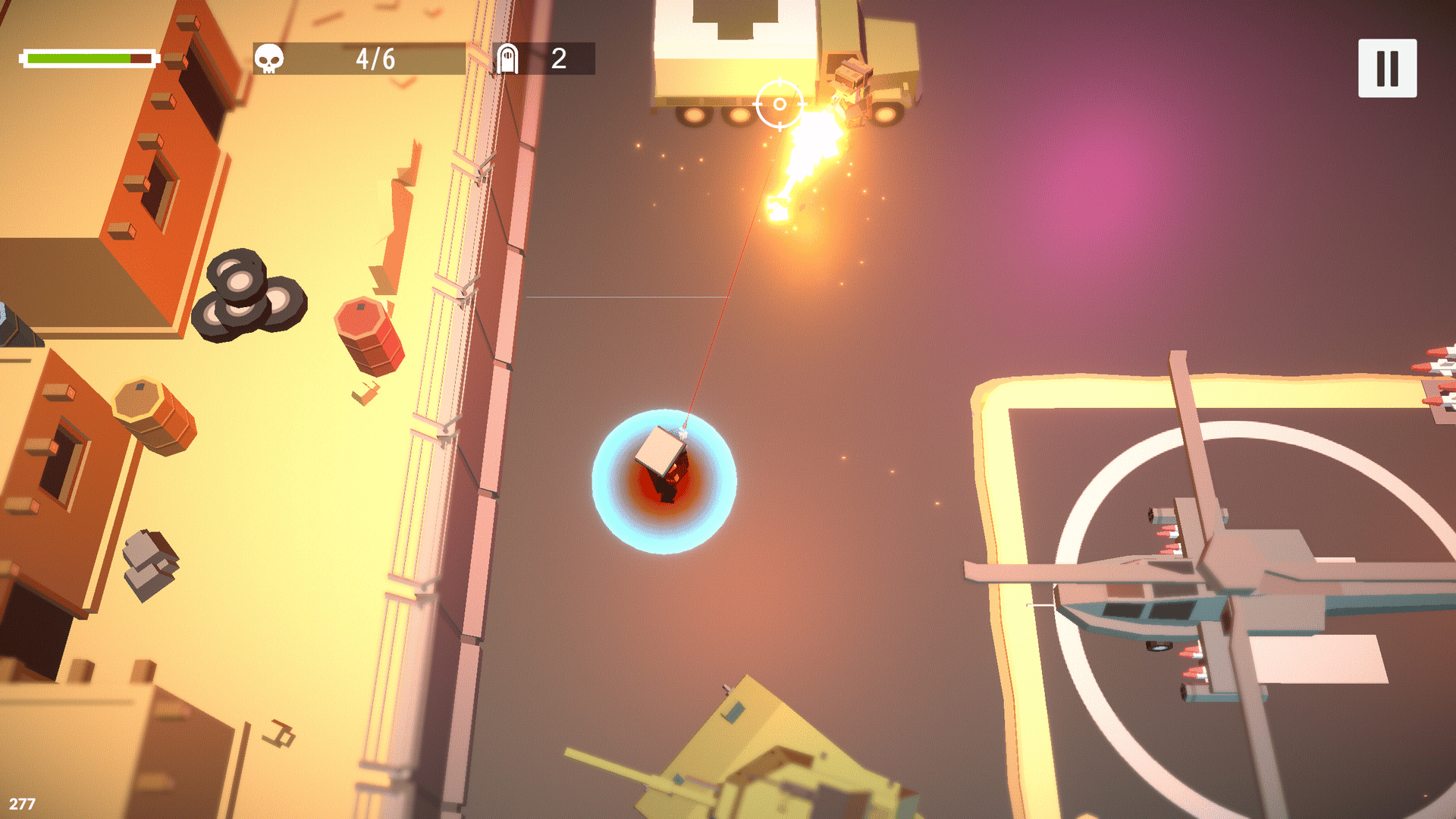 Top Down Shooter, Face a group of enemies where each type has its own behavior, trying to either destroy you or the blue cube that you have to protect. Eliminate all enemies in the stage, then move to the next stage