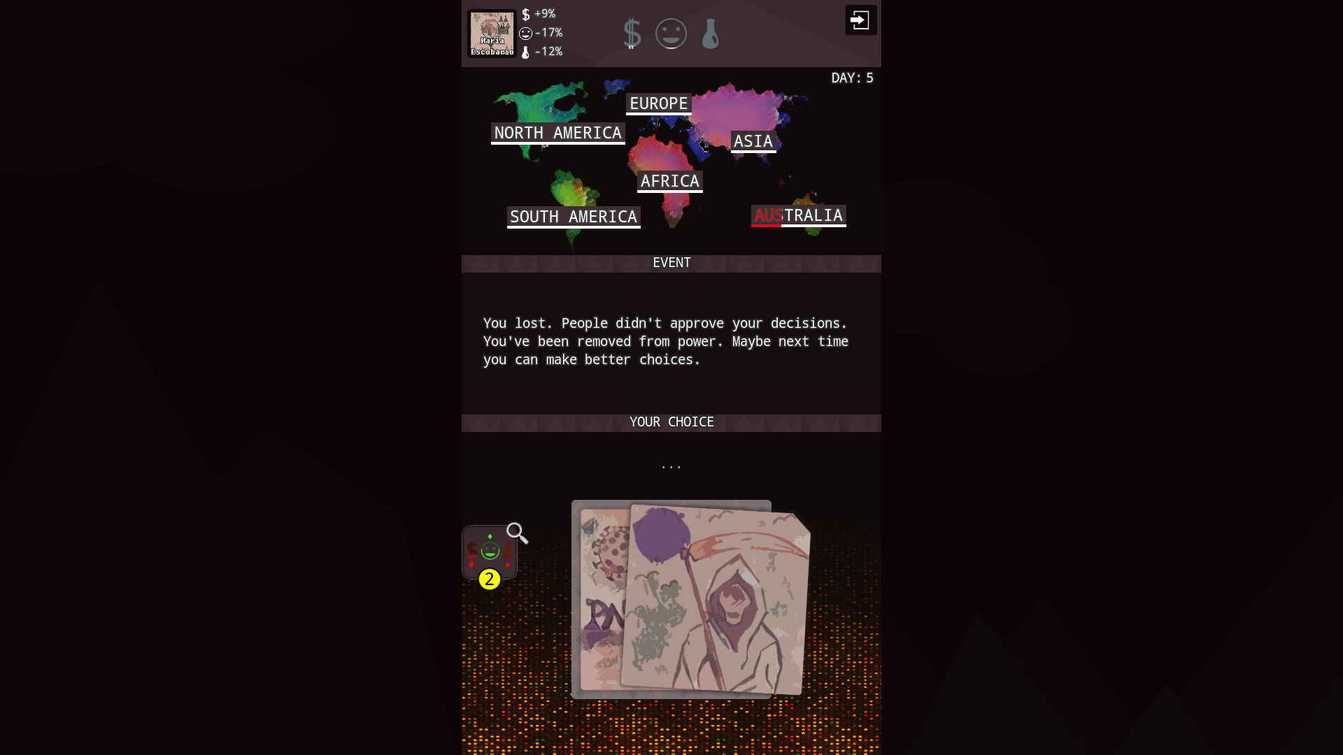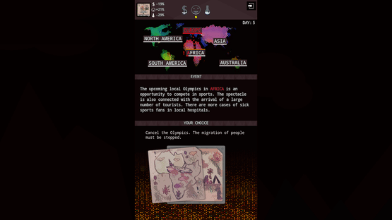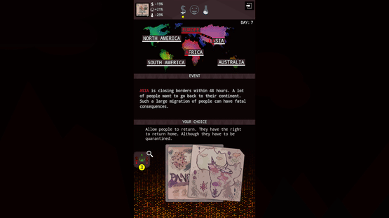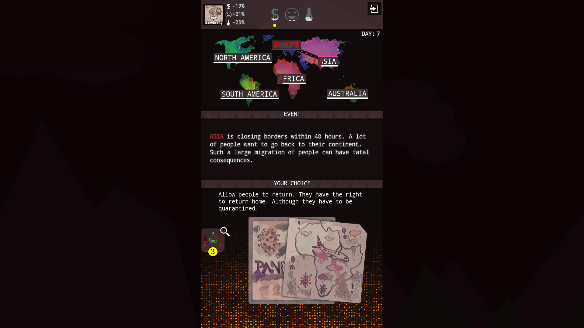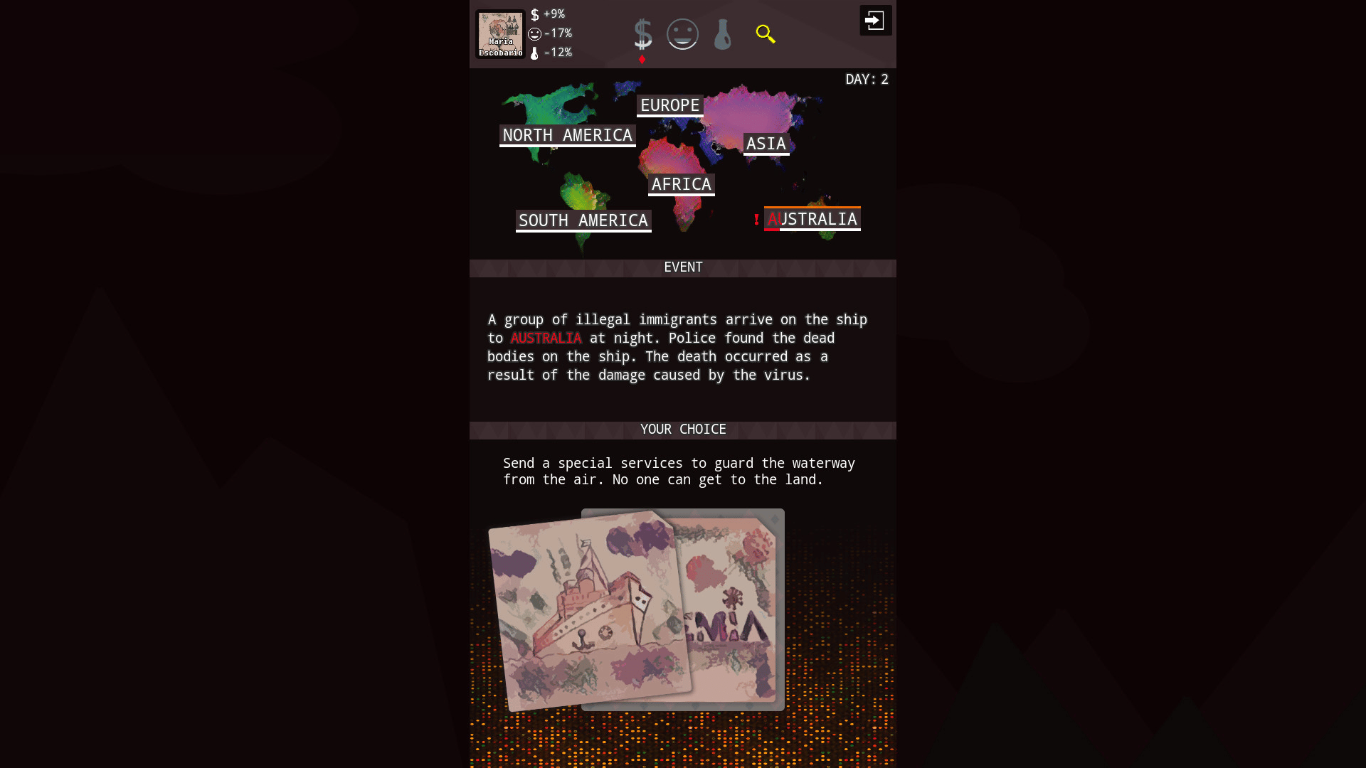 Swipe cards to face the deadly virus threat in this story driven strategy game. Step into the world in which you will face the decisions that world leaders make in the event of a deadly virus threat. Every decision have consequences.