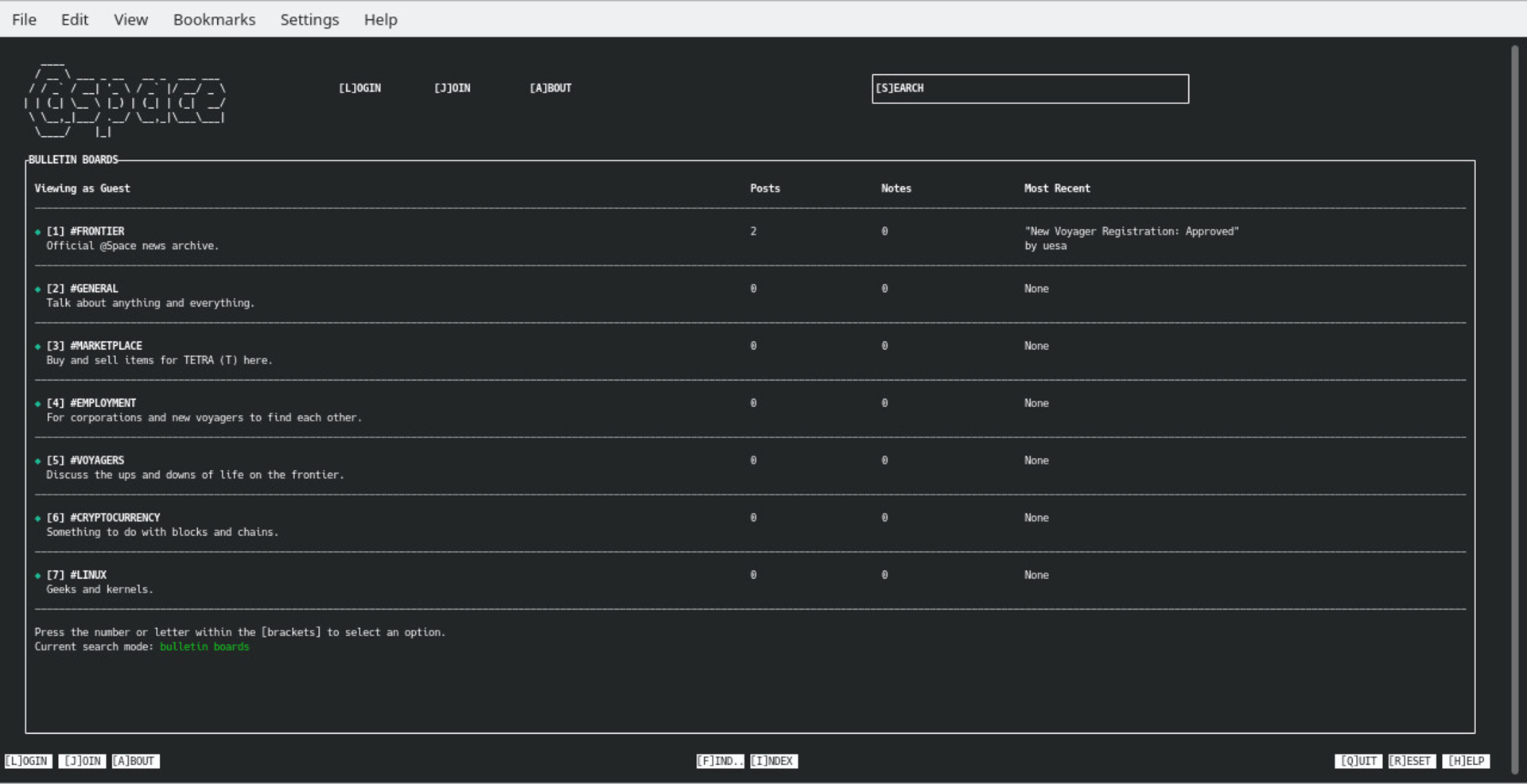Apsis Online is a minimalist multi-user roguelike (MUR) in which you play a Voyager. A human, mentally and physically augmented for a new life in deep space.
