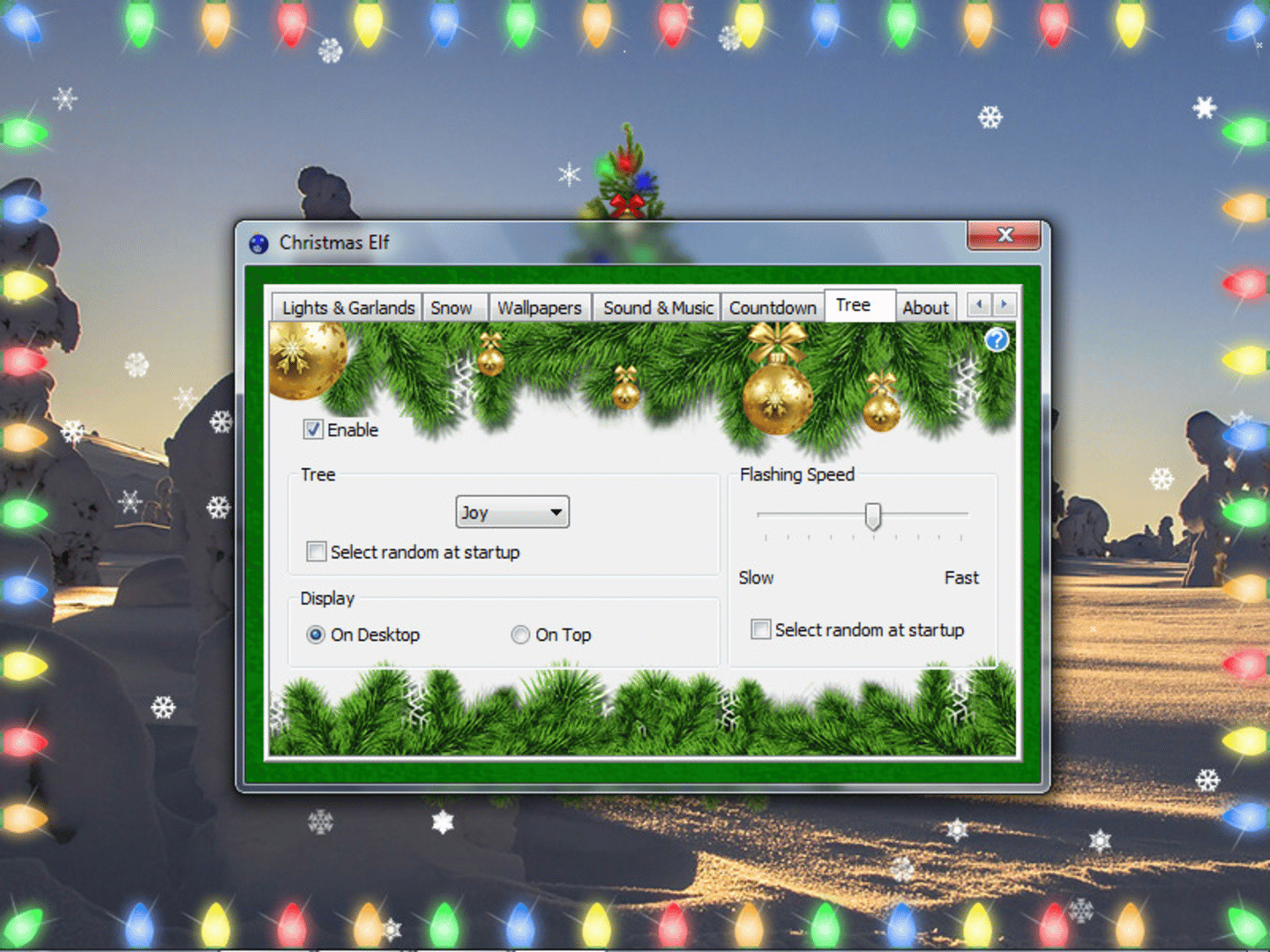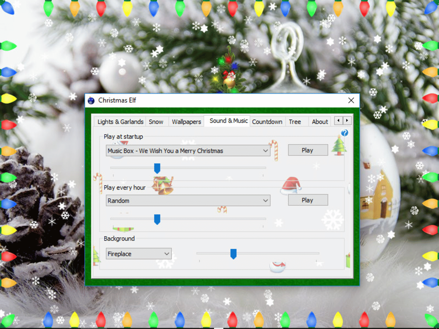 Christmas Elf will help you to fully decorate your Windows desktop for Christmas. The app offers many ways to decorate for the holidays, including lights and garlands, different types of snow, Christmas trees, festive tunes, and beautiful wallpapers.