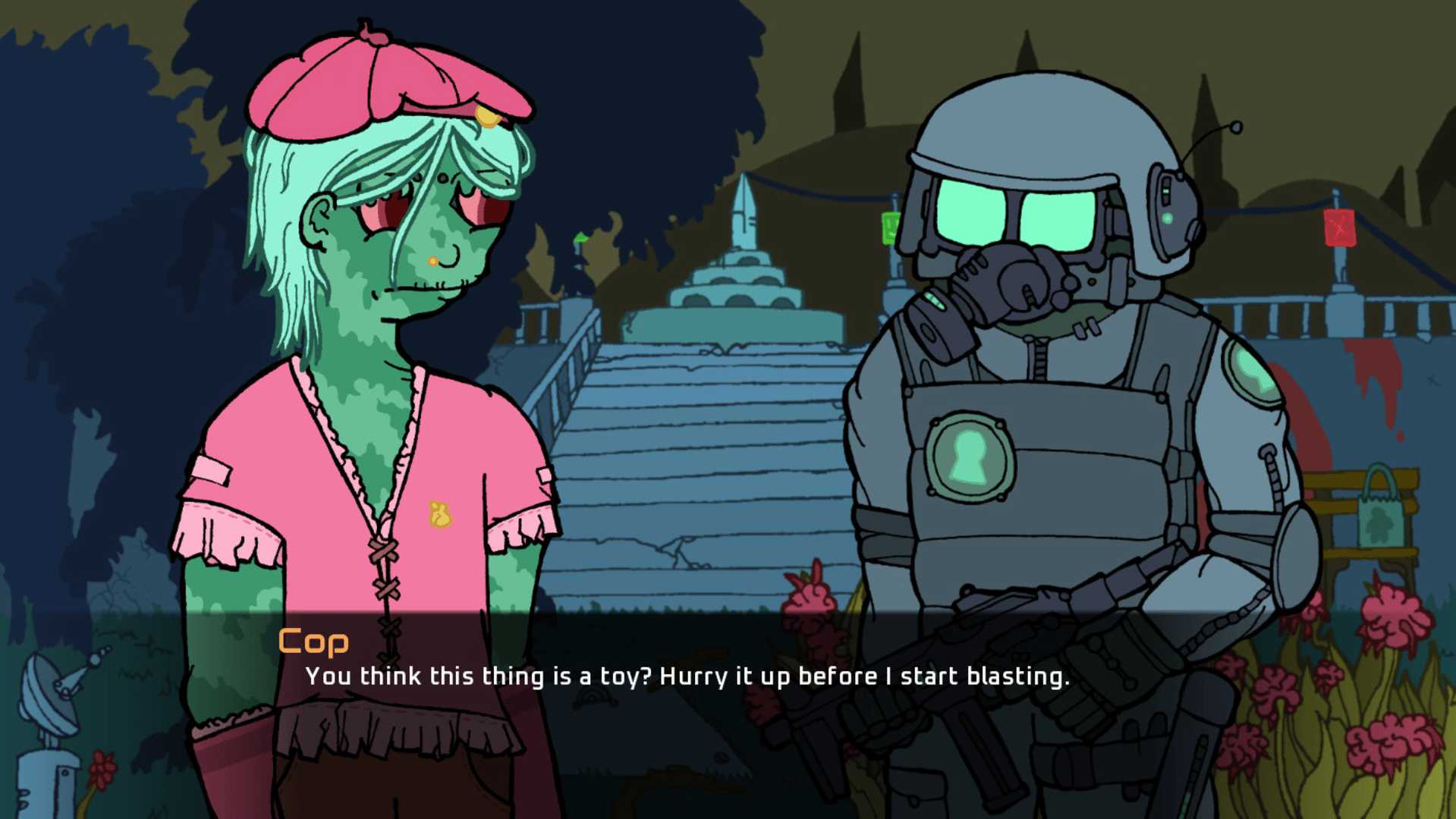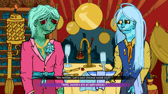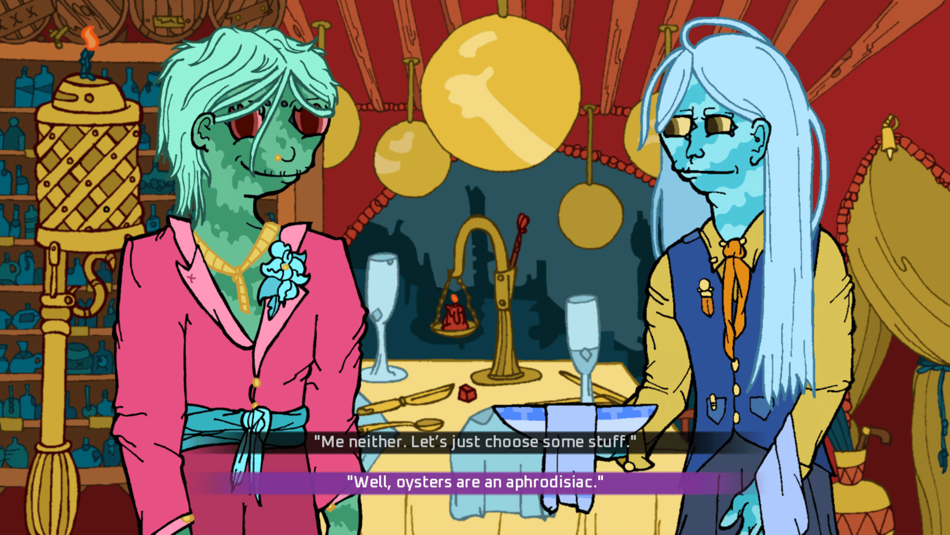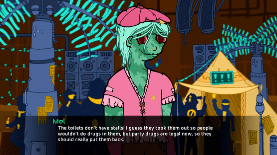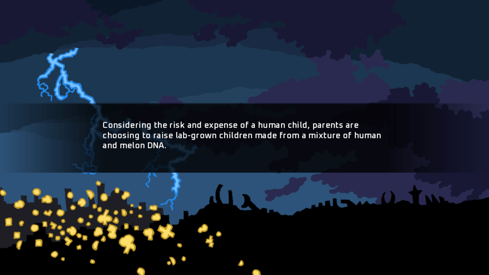 It's date night in the dystopian future. You're going out with Mel, a half-melon person with psychic powers. They seem a little weird, but at least they're cute. Choose where to go, what to do, and what to say in this highly interactive, romance visual novel.