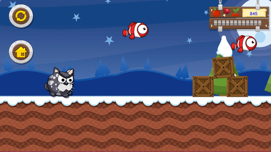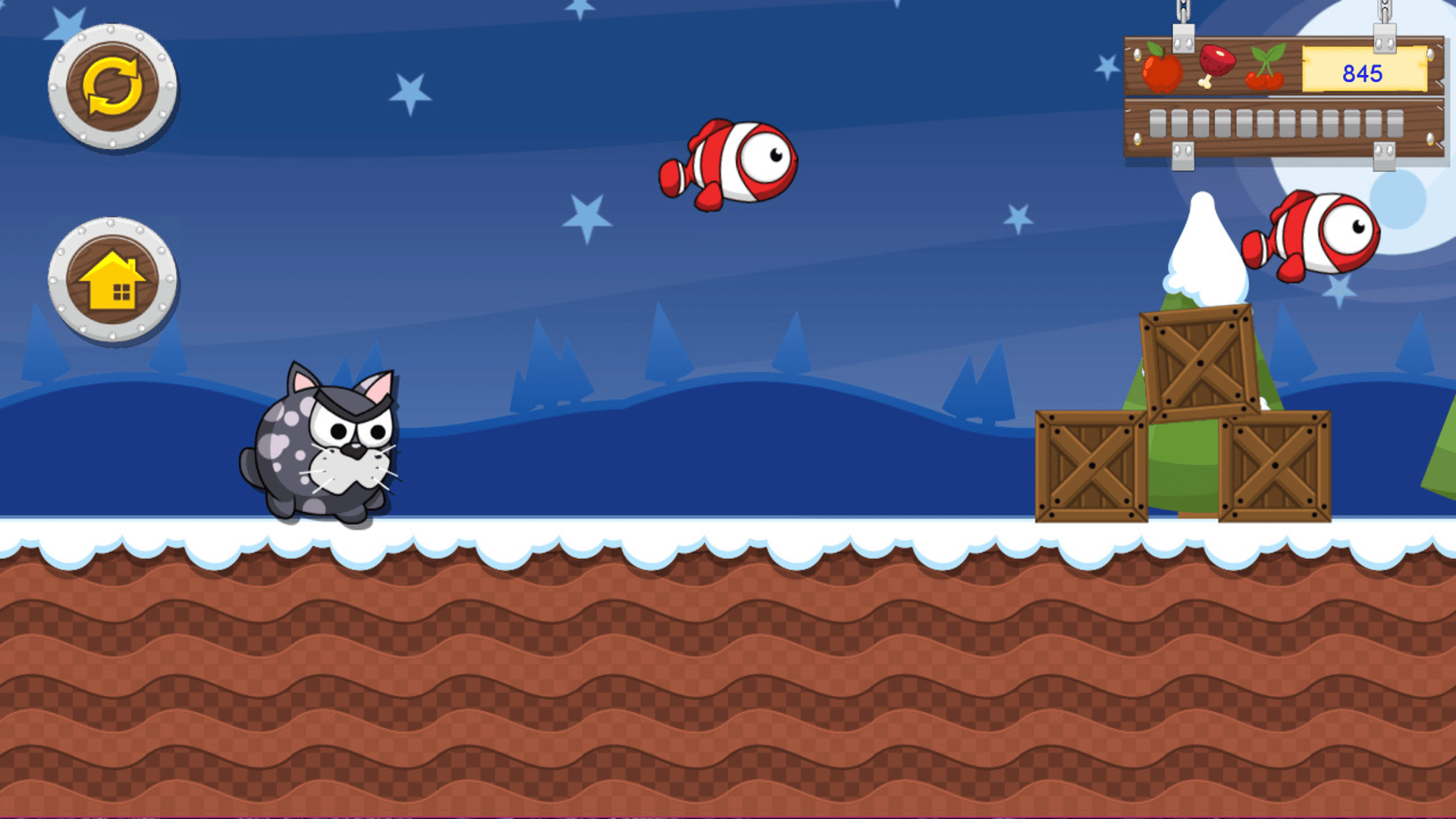 Cats and Food 4: New Year is a 2D precision platformer for cat lovers everywhere. It's time to play the perfect game for the new year! The cute little kitten is hungry. Help him jump to overcome all obstacles and collect the maximum amount of delicious food.