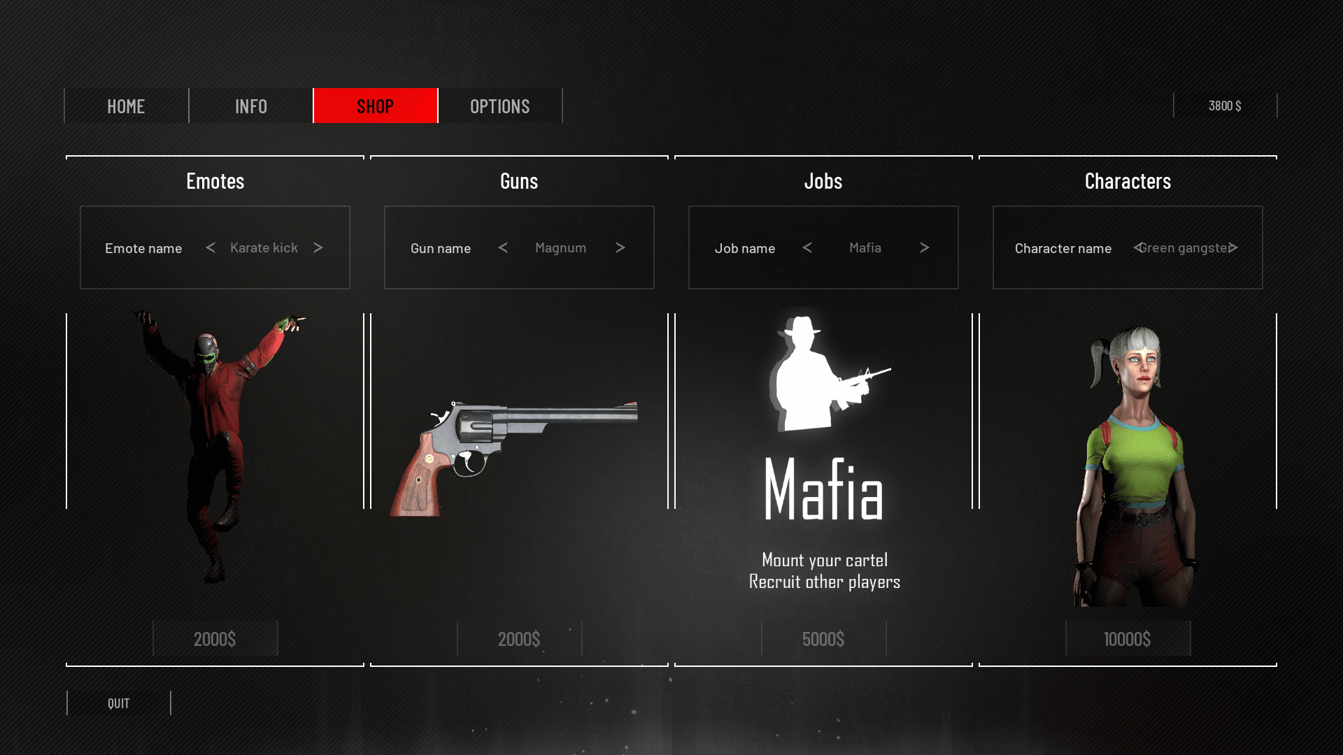 Bluff, build alliances, betray your friends, and become the richest player! Speak with other players, guess their job, and kill them if it can bring you money. Between Police, FBI, Robber, Mafia, Kamikaze, and Serial Killer, you will find the best job to win.