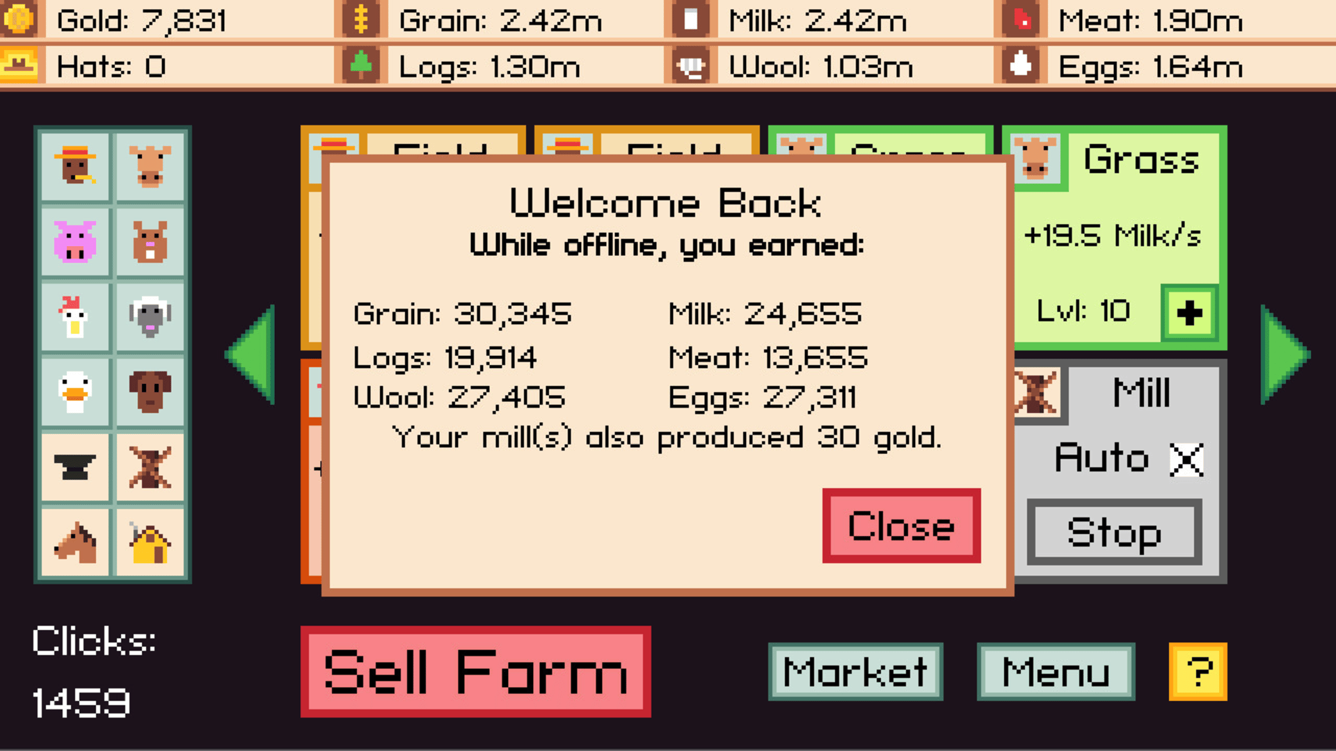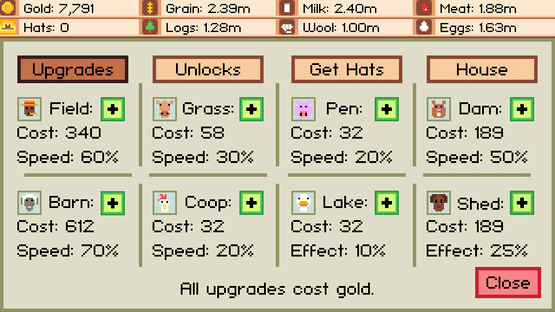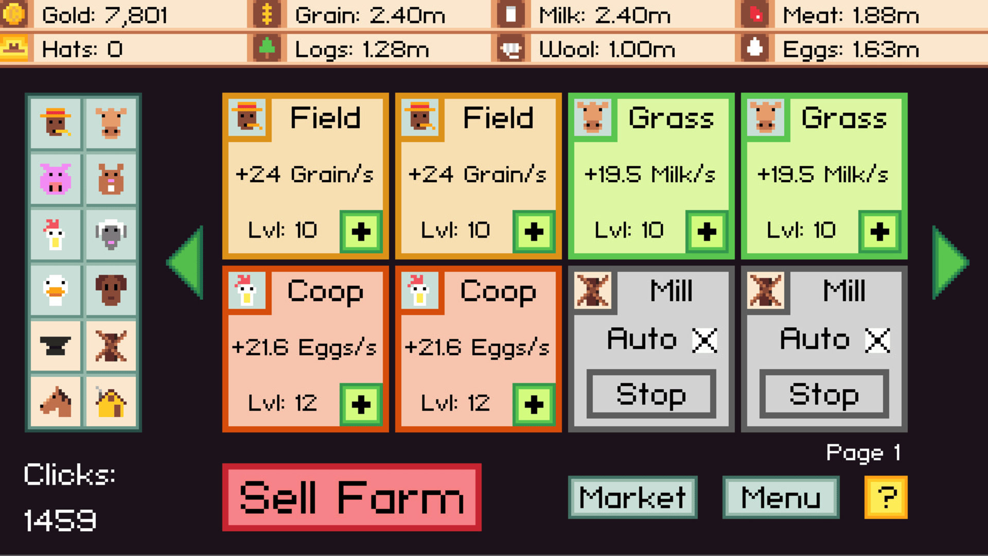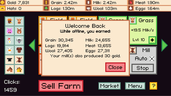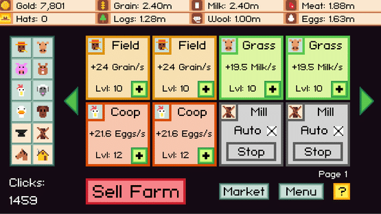 Casual farming simulator with unique, flexible gameplay. Autoclicker is built-in and free. Gather resources, upgrade critters and buildings, sell your farm when you want a bigger one and never stop expanding.