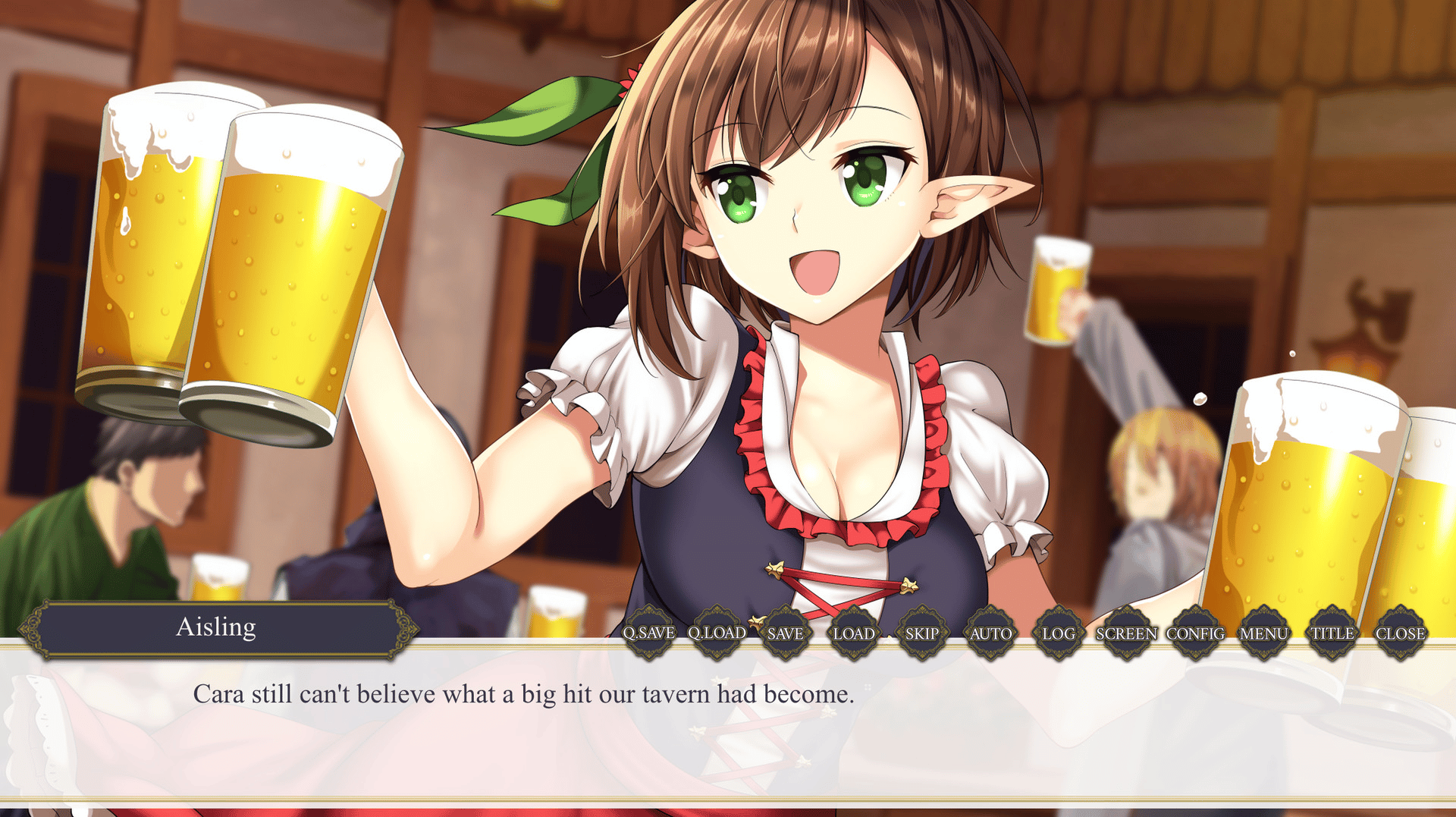 “Aisling and the Tavern of Elves” is an Isekai Fantasy-Comedy Dating Sim Visual Novel, where you play as Aisling Whitehorse, a hapless mercenary turned tavern owner eking out a living in the Elven Kingdom of Eiredagh.