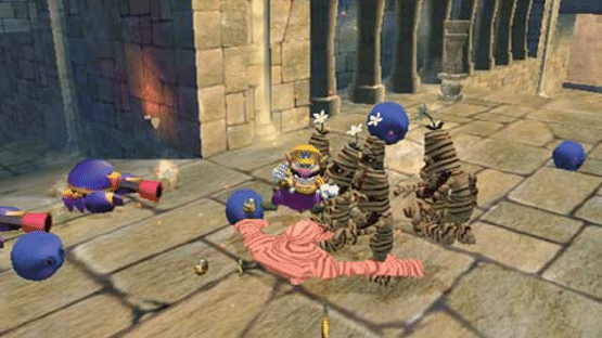 While Wario enjoys the riches from his many adventures, a mysterious black jewel in his trove transforms gems into monsters. Now, Wario must scramble to recover his riches in an alternate world filled with quirky puzzles, swarming enemies, and lots of loot. As Wario, you'll punch, kick, jump, grab monsters and objects, and inhale surrounding coins like a vacuum cleaner. You must cling to 3D balls to fight bosses, find hidden areas through trap doors, and bash your surroundings to uncover secrets.