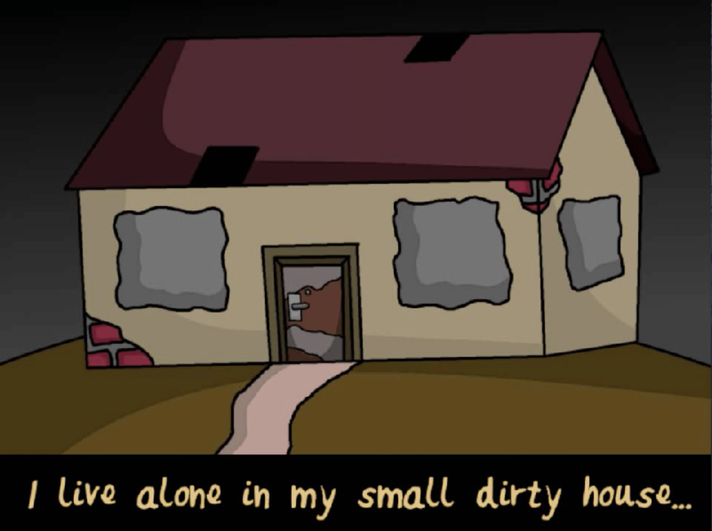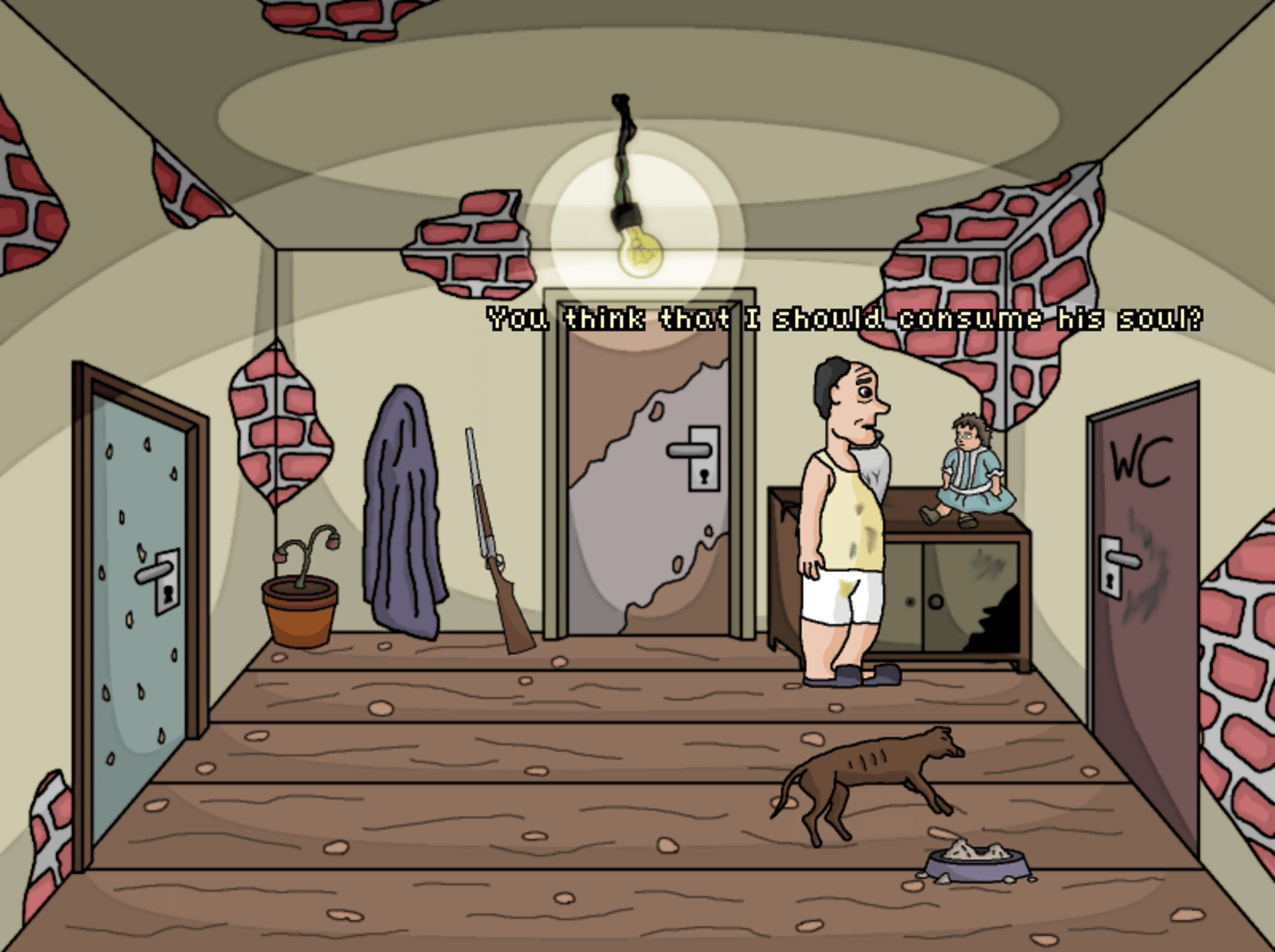 A game about a sad man who lives in a small house, his only two friends are his dog and a toiler spider. What he doesn't know, there is a big misfortune awaiting him.
