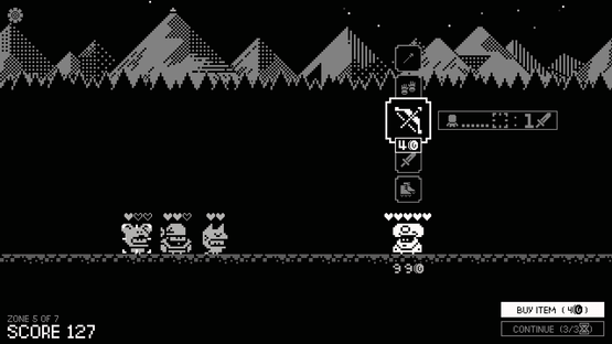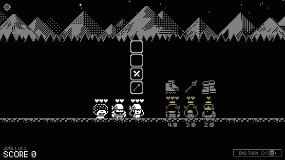 Plan around enemy intents and seize the Crowns in a series of turn-based combat with permadeath and no RNG. Your Crowned party then becomes your next run's BOSSFIGHT! Unlock and find item synergies from enemy loot or The Merchant as you play. Each run is short but victory is just the beginning!