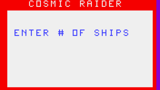 Cosmic Raiders is a side-scrolling shoot 'em up where the player's space ship can move both left and right and there is also a radar showing the locations of enemies. In every level four bombs are dropped along with a number of fighters to ensure the bombs reach the surface of the planet. The objective of the game is simply to clear all the enemies and get the highest score possible. For every two bombs destroyed an energy star that the player can collect will appear. By picking it up the player's ship is energized with an invincible energy shield. Once all enemies have been cleared from one level the game moves on to the next.