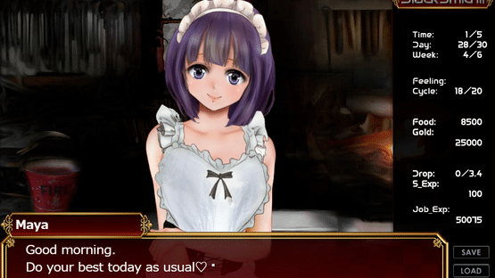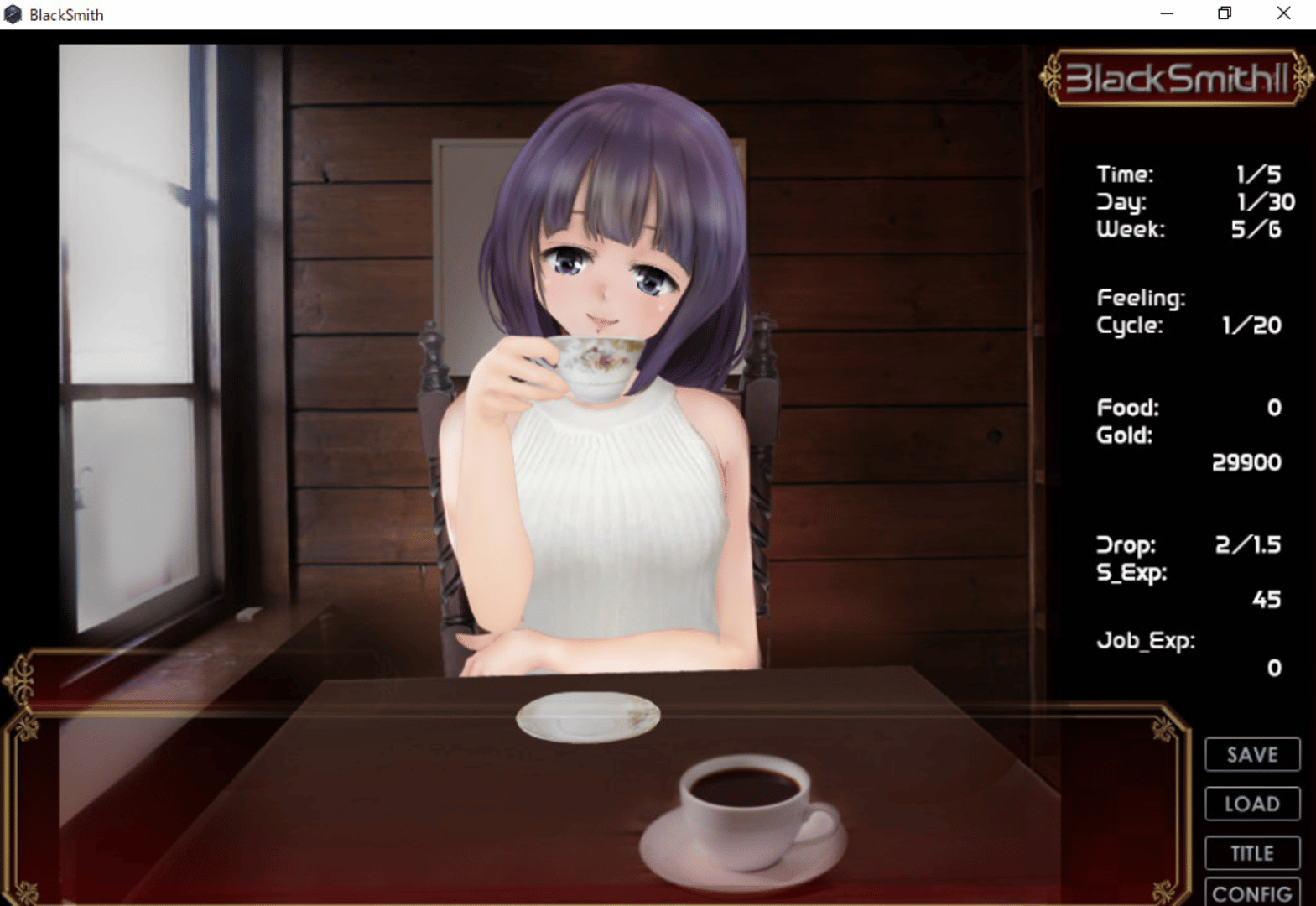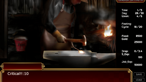 You are a blacksmith in a small rural village. You steadfastly earn your living by hammering out products daily, but at night, you take your earnings and go to town to seek out innocent and cute girls. Continue improving your experience and skills, so that you can raise the price of your products.