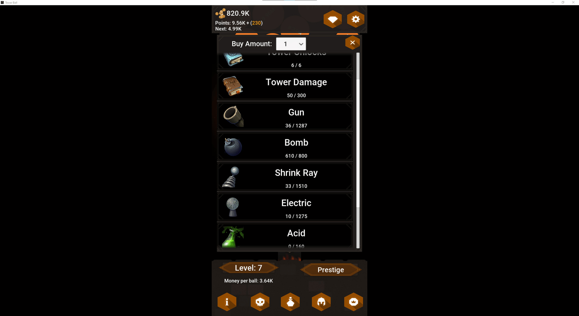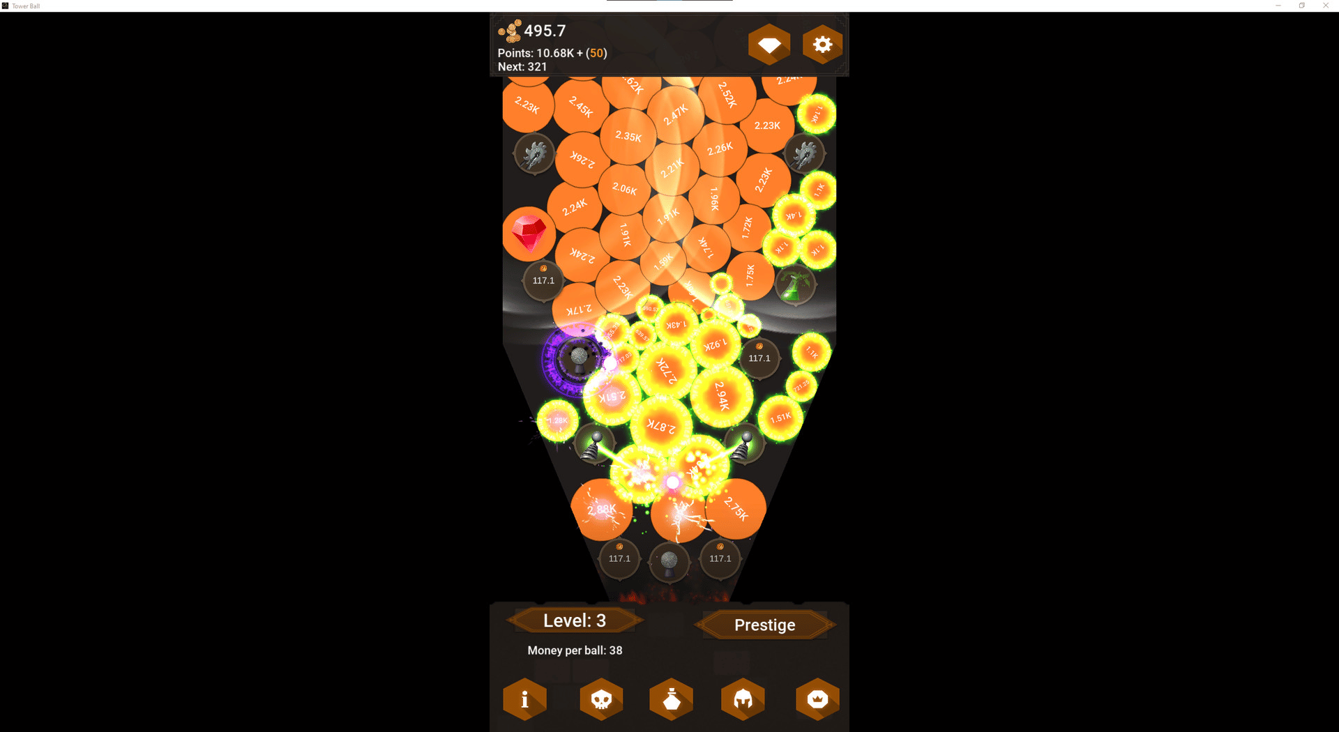 Build turrets to destroy balls & earn cash, spend it to upgrade and get stronger