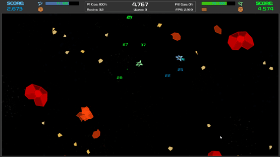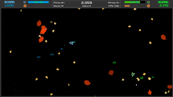 Rock 'N Roll G.E.O.S. Wars is a completely new dimension of the original Rock 'N Roll game. In this game, players can work together to vanquish the space rocks that threaten Earth... or they can choose to face each other in a wide variety of duel modes!
