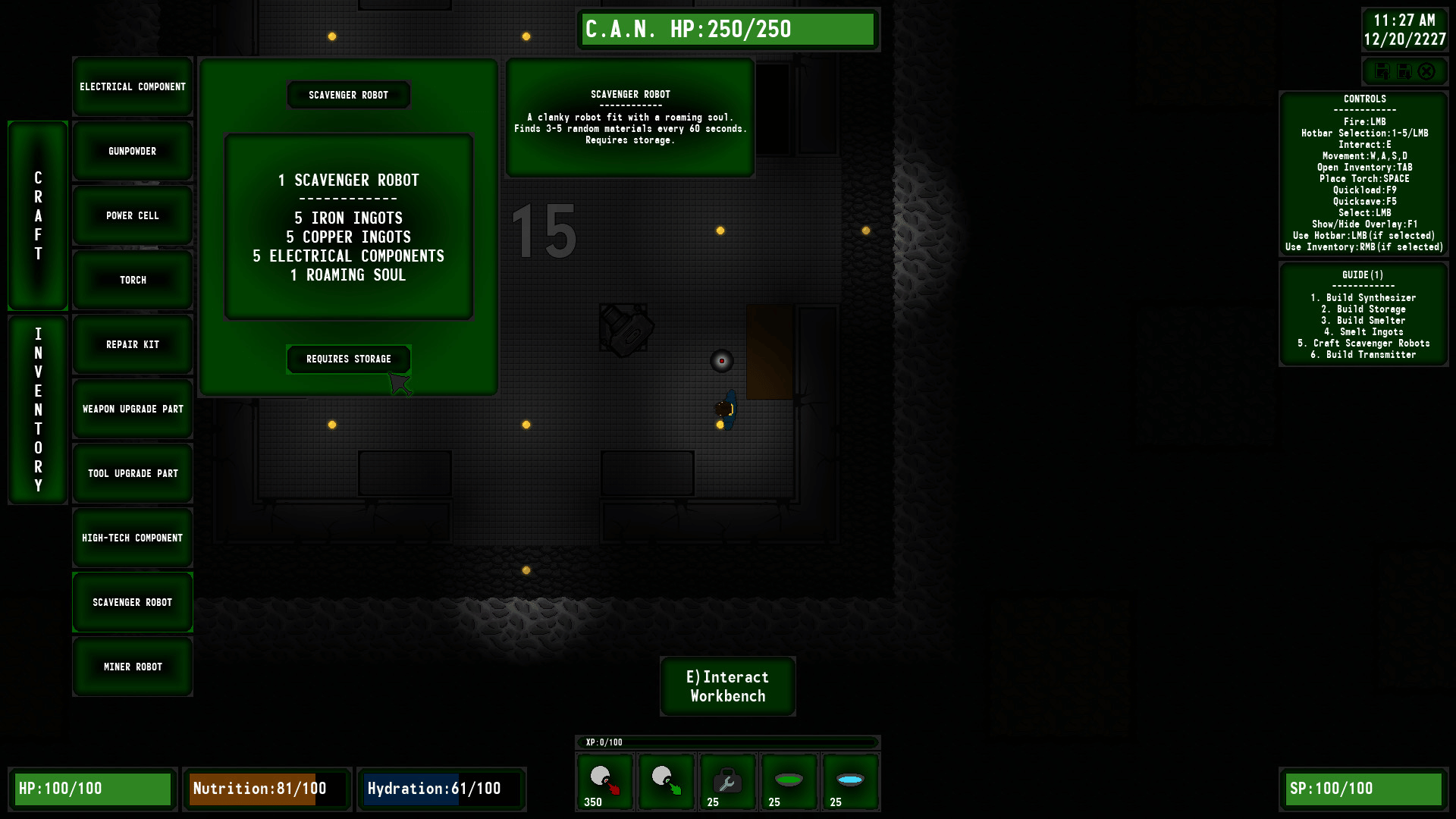 Amborettio is a post-apocalyptic mining/survival RPG with a focus on crafting, equipment upgrades, and resource management. Mine, craft, and fight your way through the caverns as you try to uncover the truth about the PR0T3CH coalition's goals.