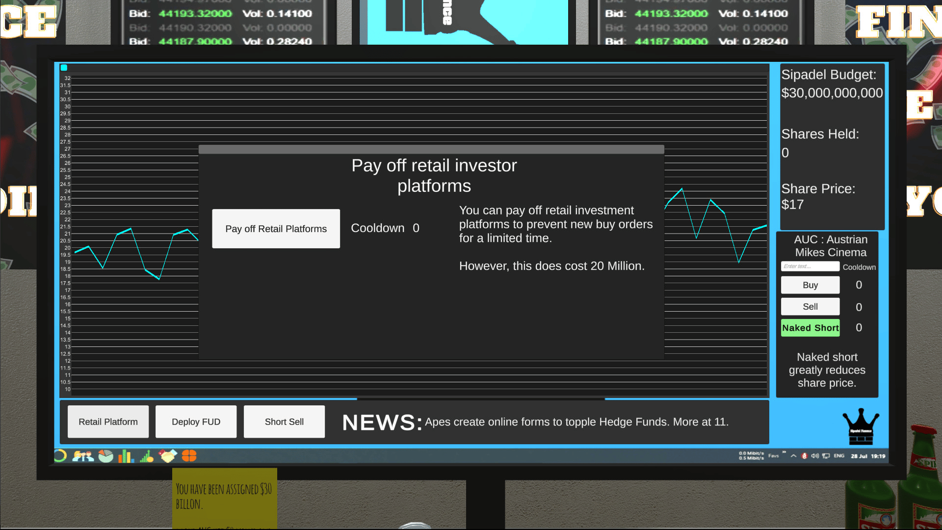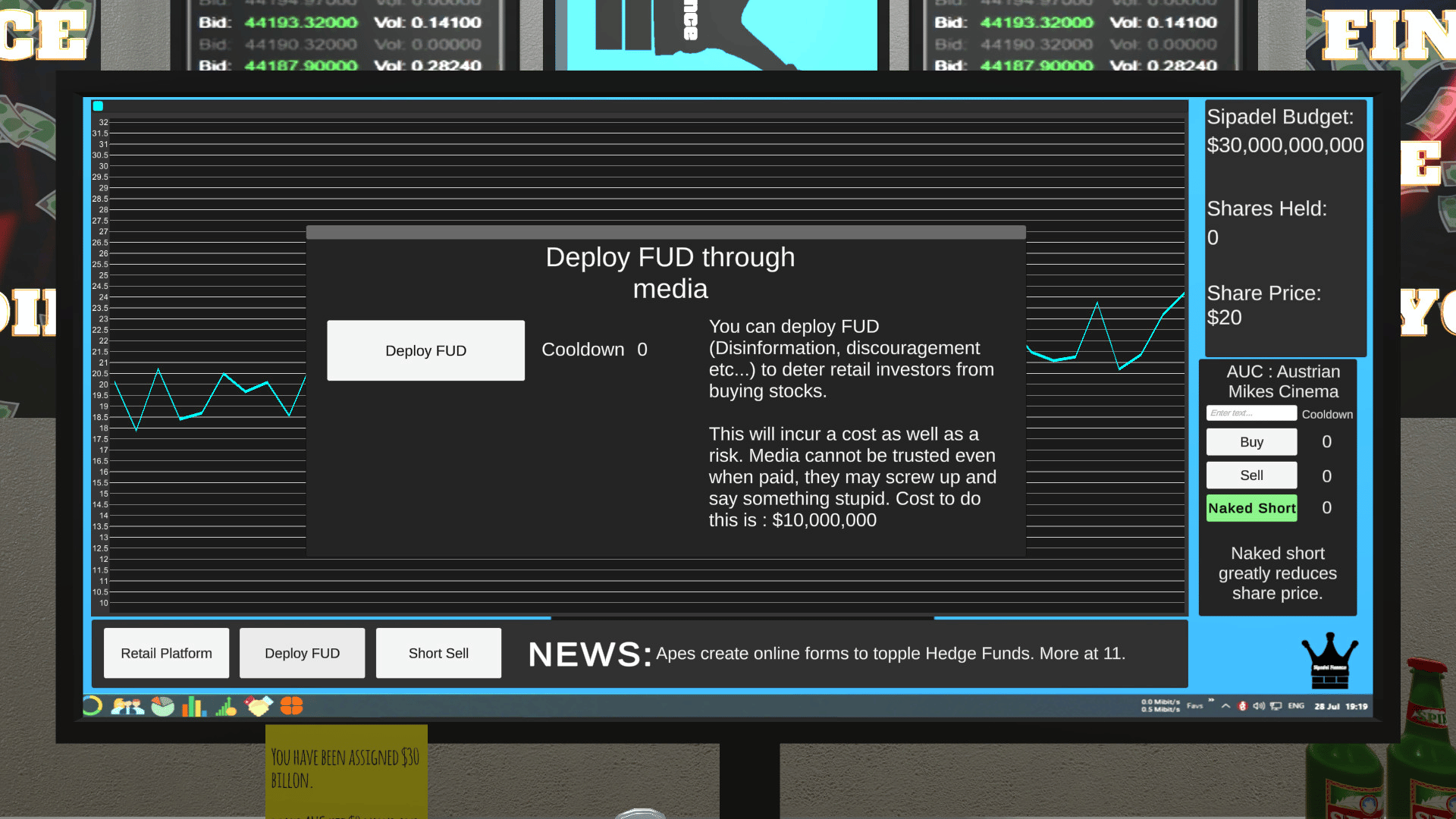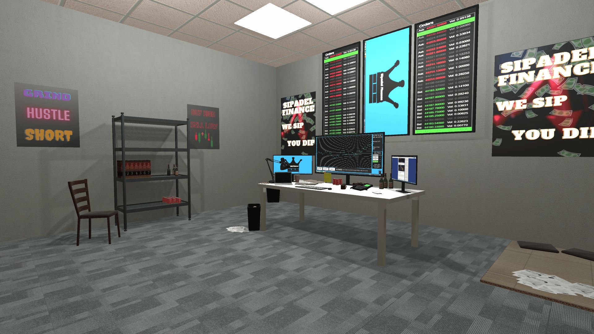 Trapped within the offices of a large hedge fund called Sipadel Finance. It's your job to take a sip and make the apes dip.