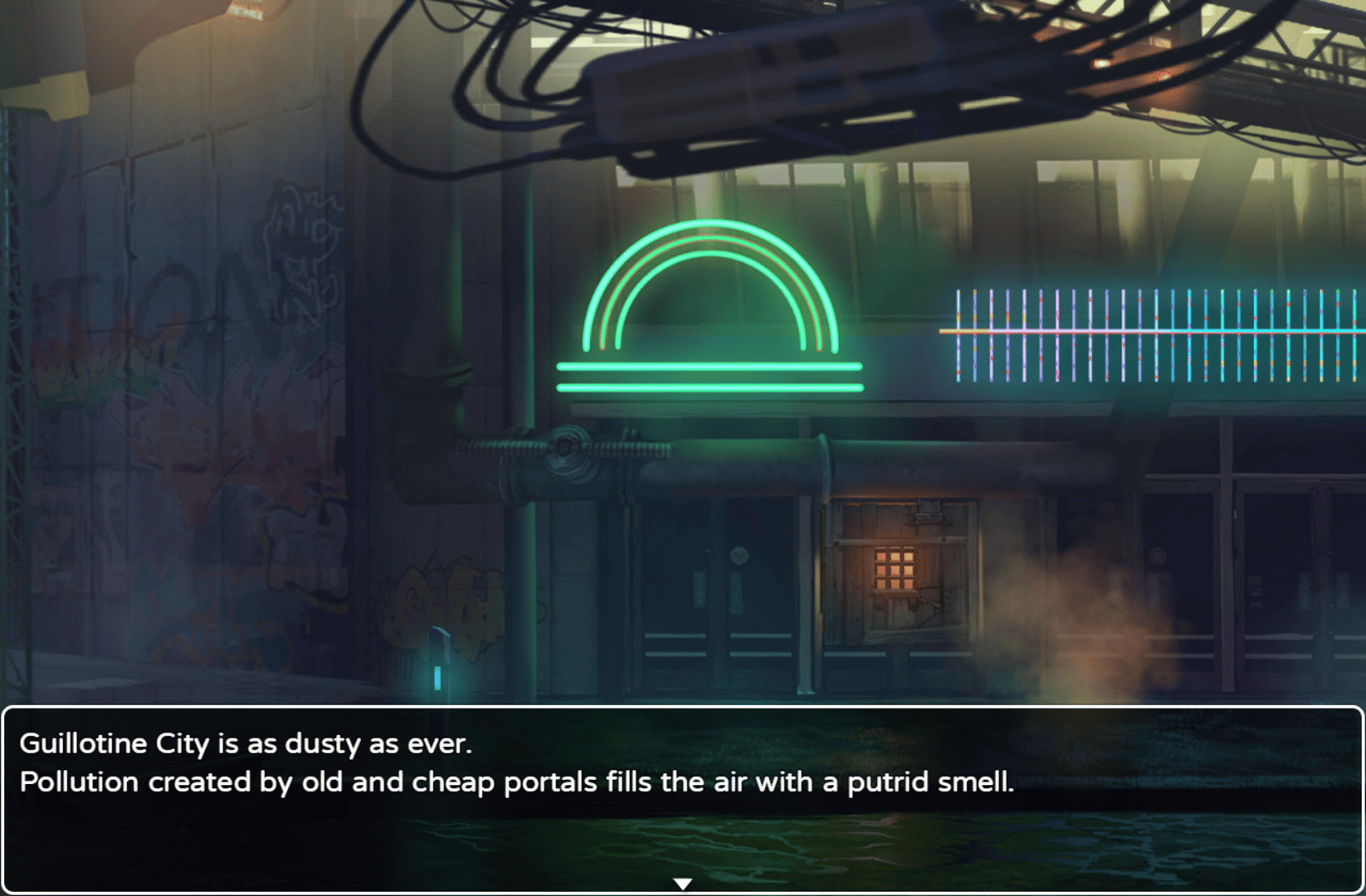 5029 AD, "Guillotine", the Japanese territory on Mercury, a city full of neon signs and drunks. You will explore the beautiful cyberpunk-style 2D world, play music to the residents of Mercury to gather intelligence, and finally achieve the goal of saving the world.
