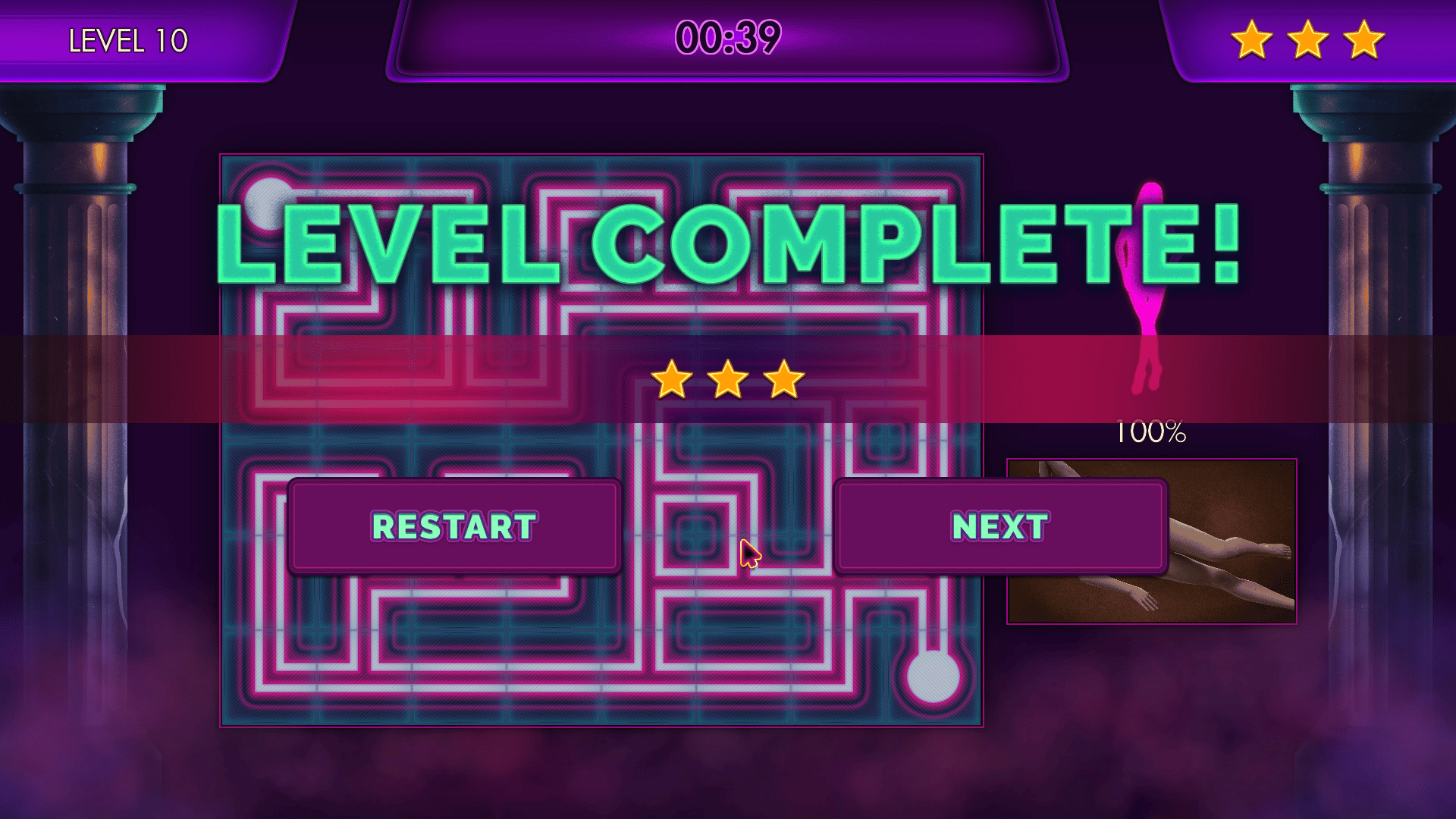 It's puzzle time! Connect all the neon pipes together to solve the puzzle and reveal high quality, realistic, naughty & sexy girls!