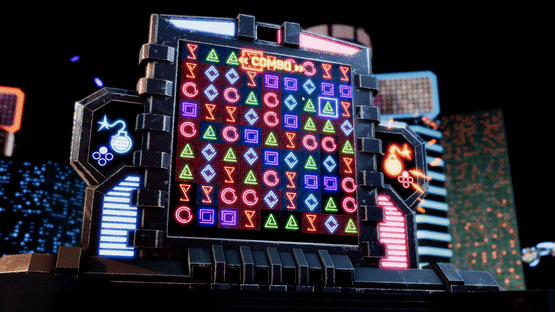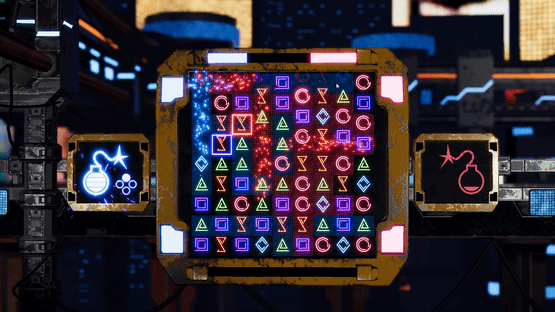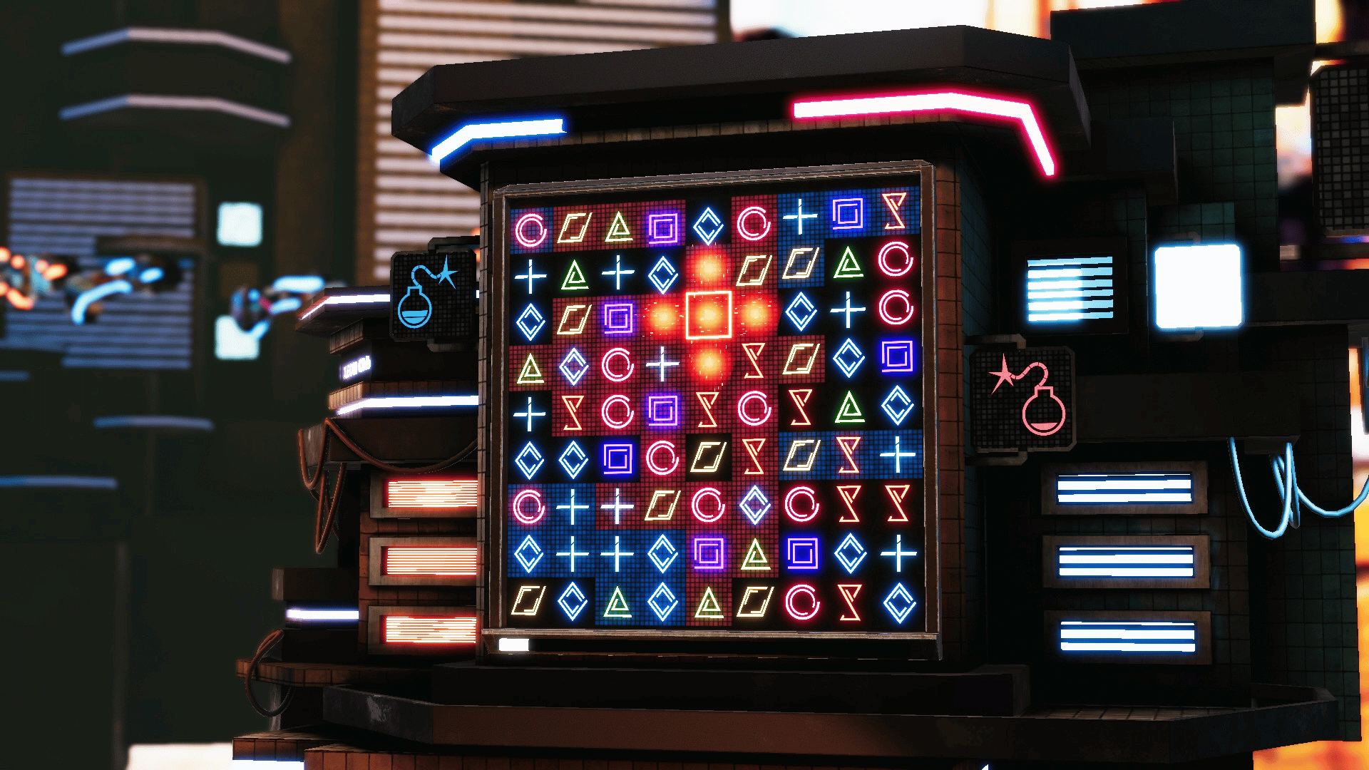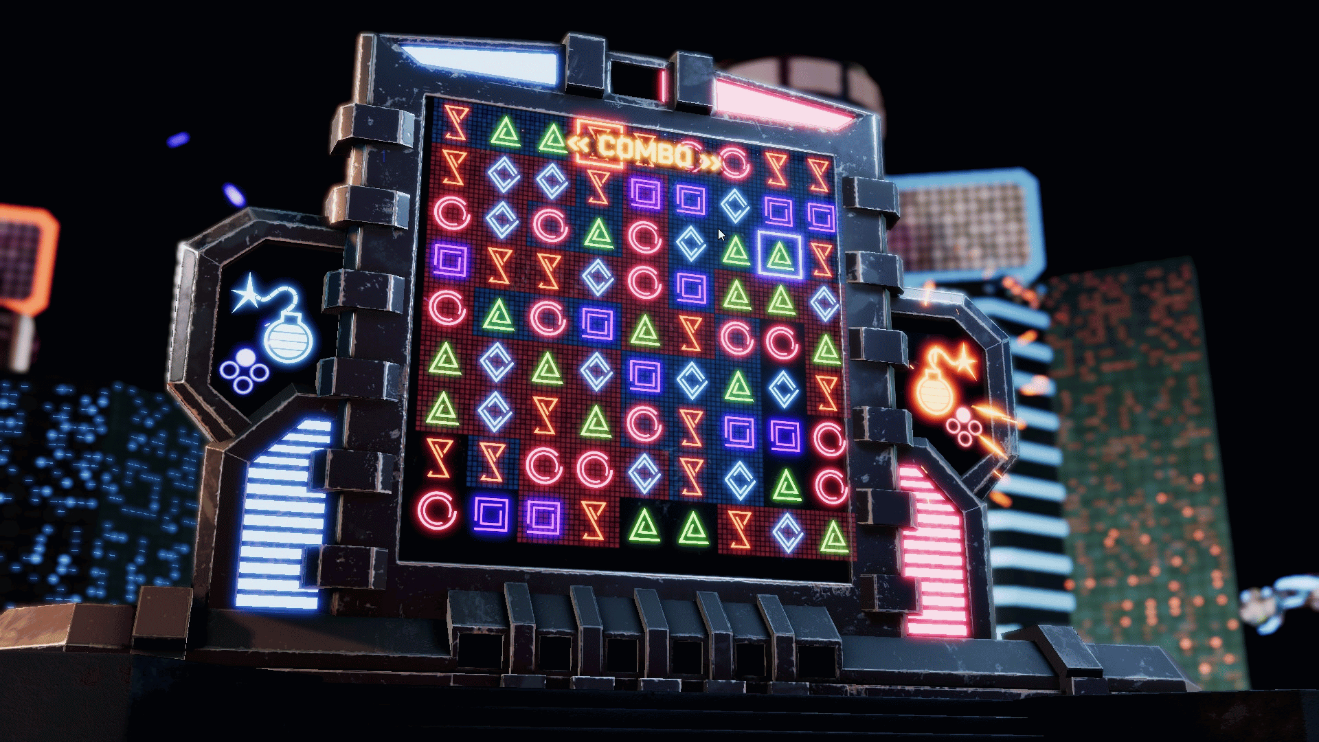 This game takes the classic MATCH-THREE concept for a spin. A competitive and rapid gameplay, set in a dystopian CYBERPUNK future. Match three signs to colorize the board and DOMINATE your opponent.