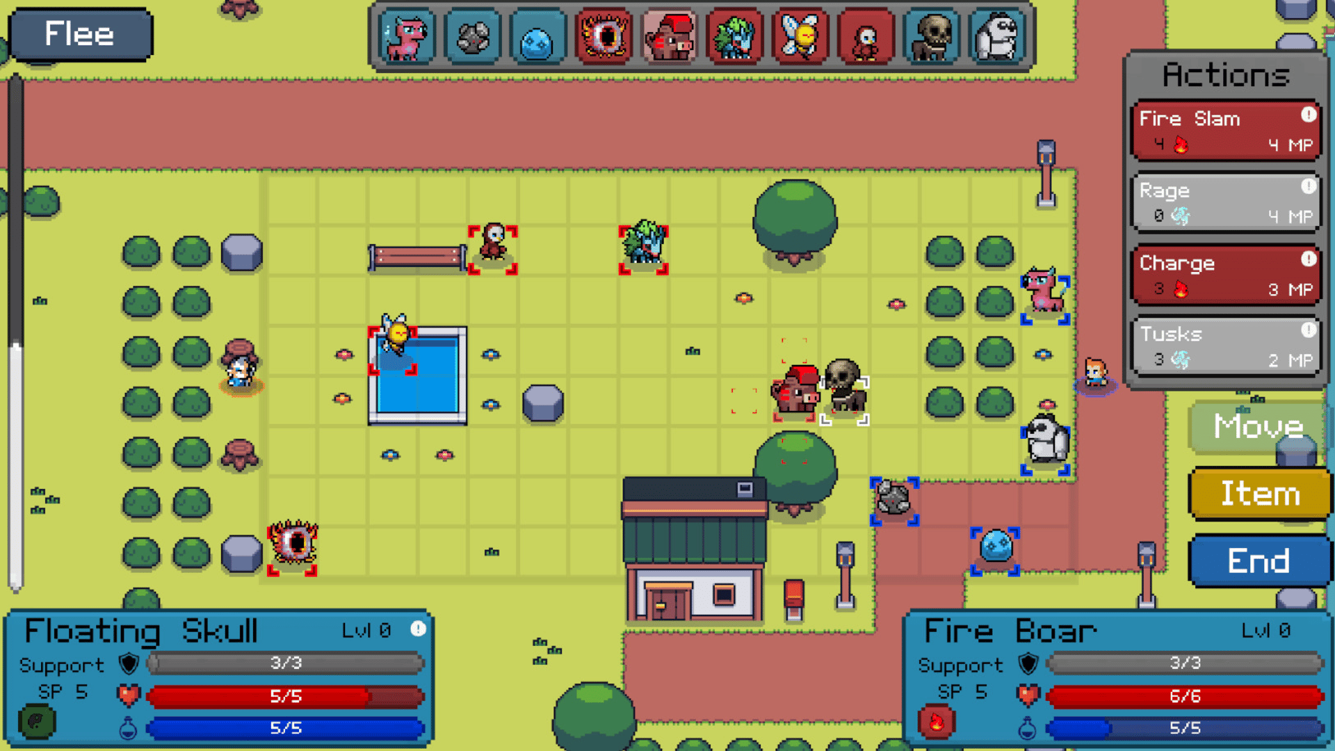 A monster taming game crossed with tactical grid based combat and open exploration.