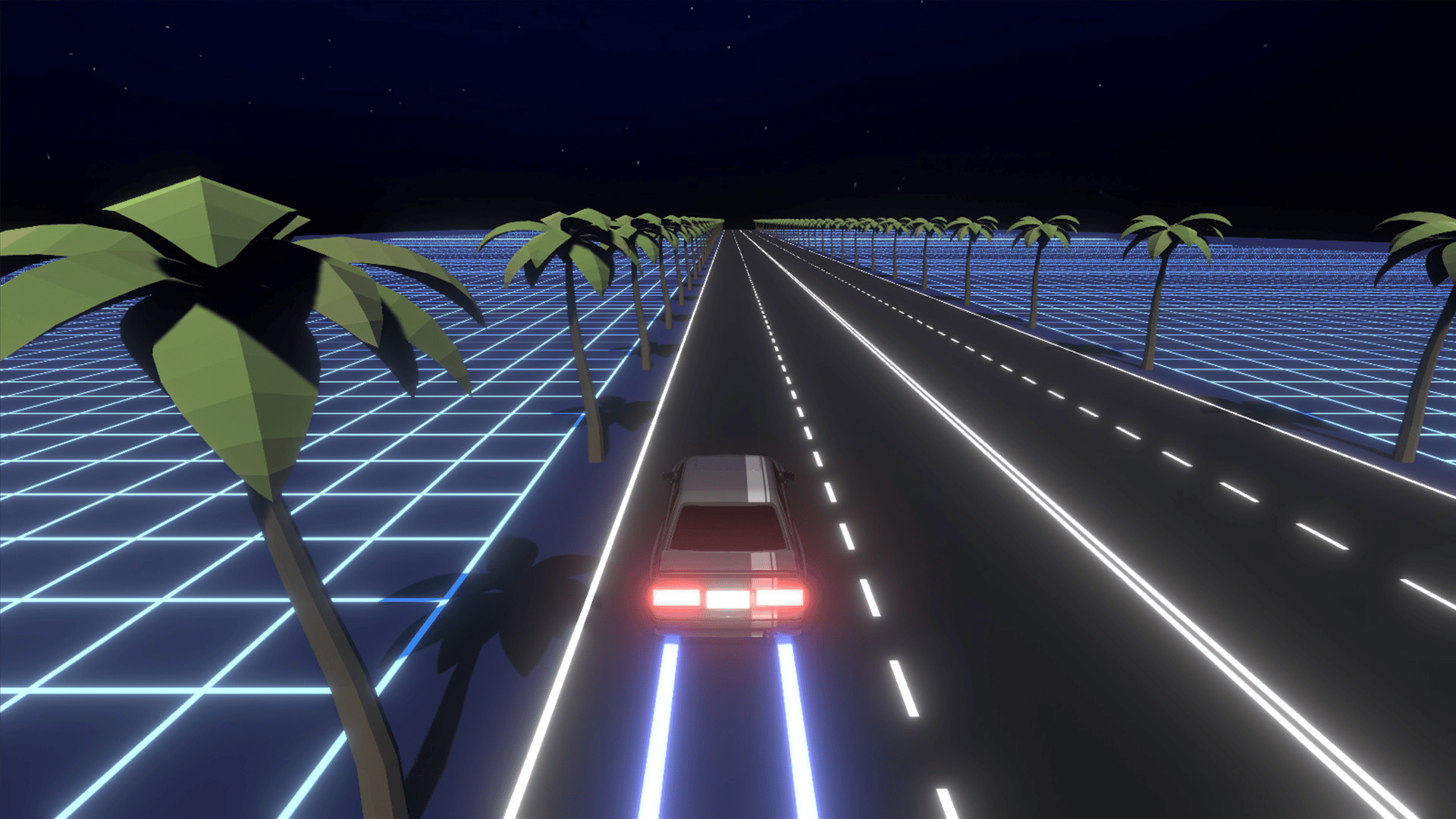 Endless road, neon lights, palm trees. The game immerses you in the atmosphere of the 80's. Welcome to 80's Night! 80's Night is a car simulator game in which you drive along the endless road and avoid other cars.