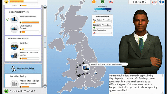 Floodsim is a flash-based serious game created by Norwich Union in cooperation with Playgen in 2008 in order to raise awareness of the dangers that flooding present to the United Kingdom. The goal of the game is to protect the people of the United Kingdom from floods that damage the economy and lives of the people through an assortment of realistic means over a time span of three years.